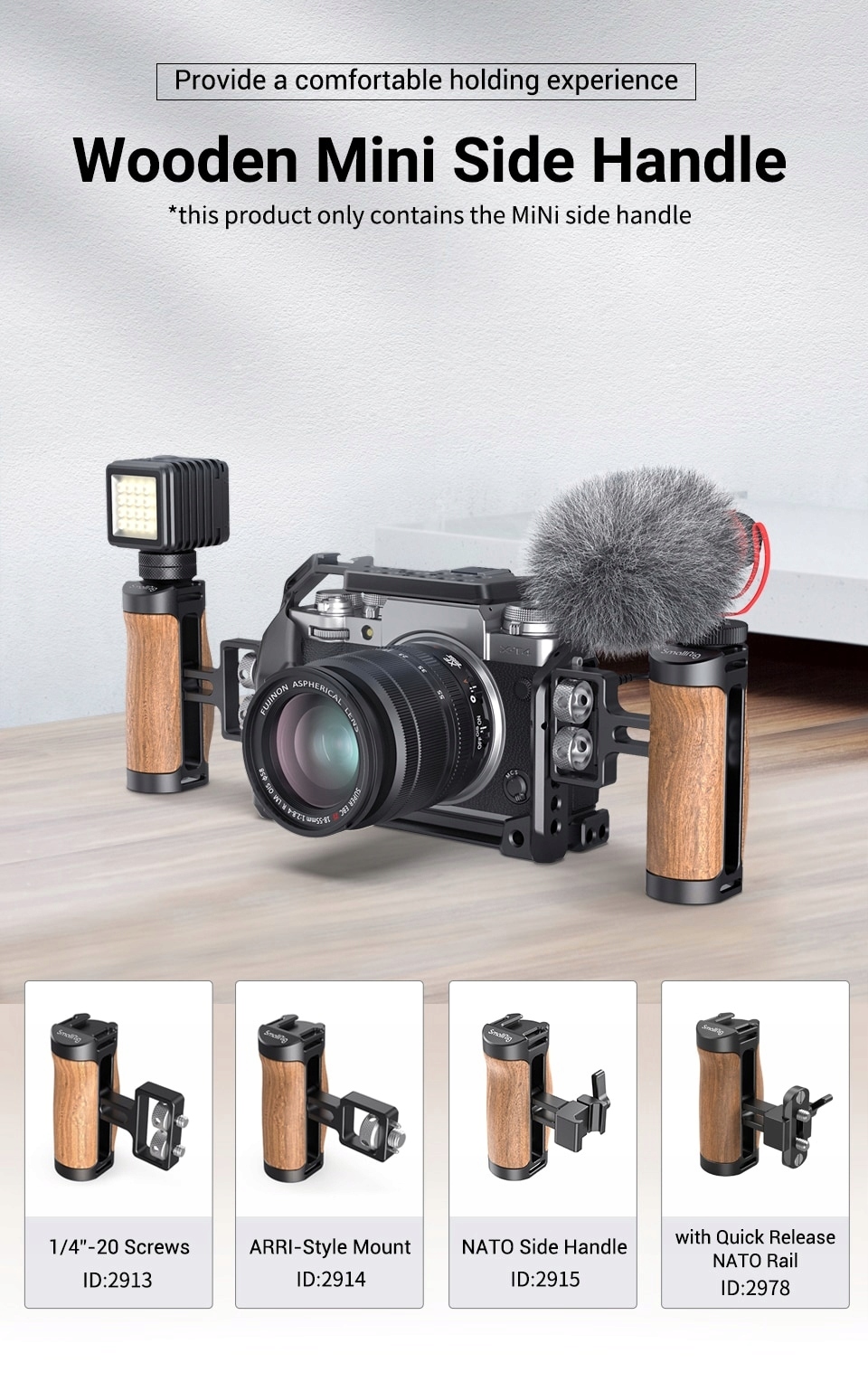 Бічна ручка для фотоапарата Sony Canon Nikon, дерево