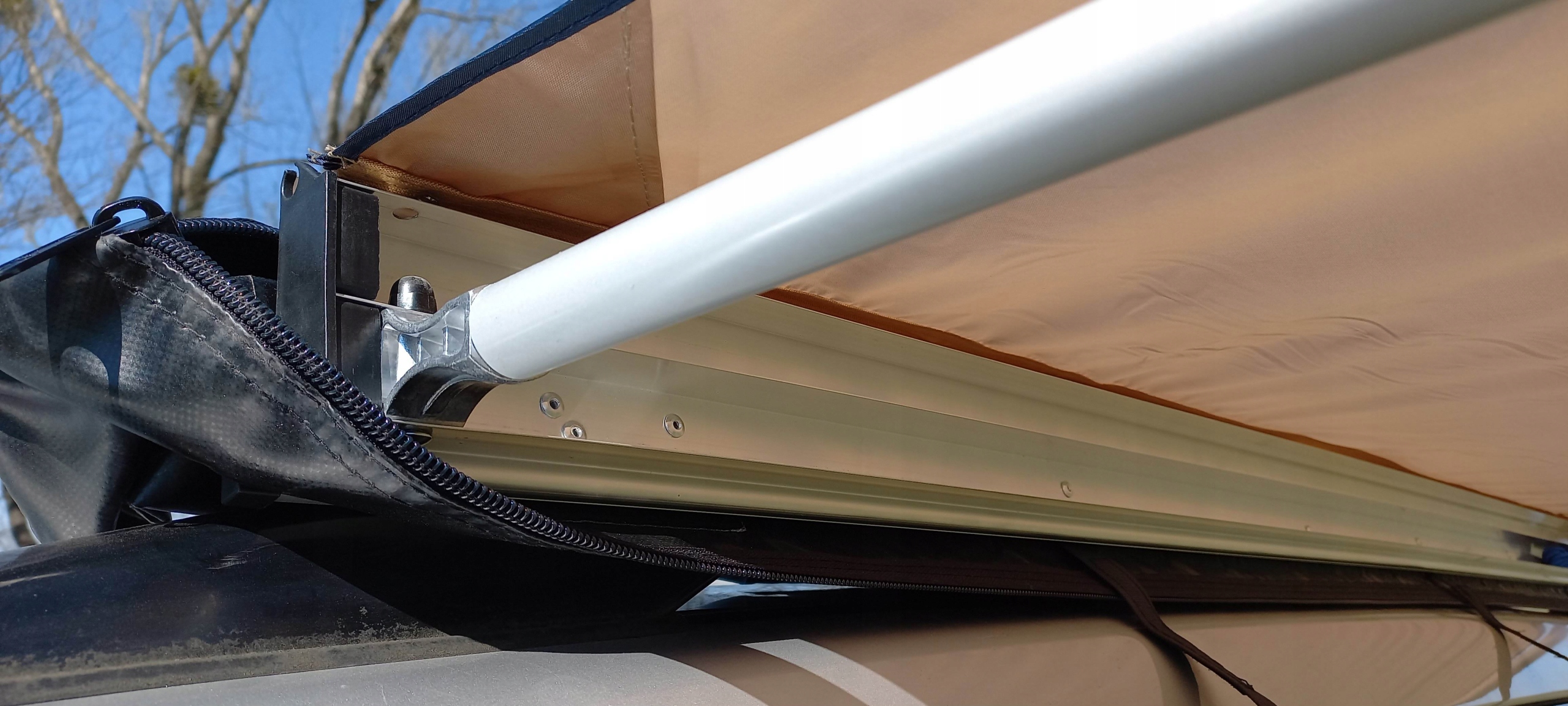 Дах складається вручну, конструкція з боків посилюється алюмінієвими трубами.