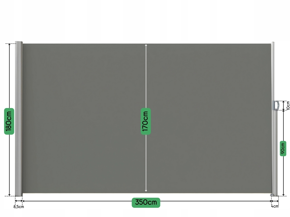⭐️⭐️⭐️ ВЕЛИКИЙ БІЧНИЙ ТЕНЗ, РОЗСУВНИЙ 350 × 180 см З УТРИМАЛЬНОЮ СТРІЛЬКОЮ РОЛЕТНА НАКЛАДКА НА ТЕРАСУ СІРА⭐️⭐️⭐️