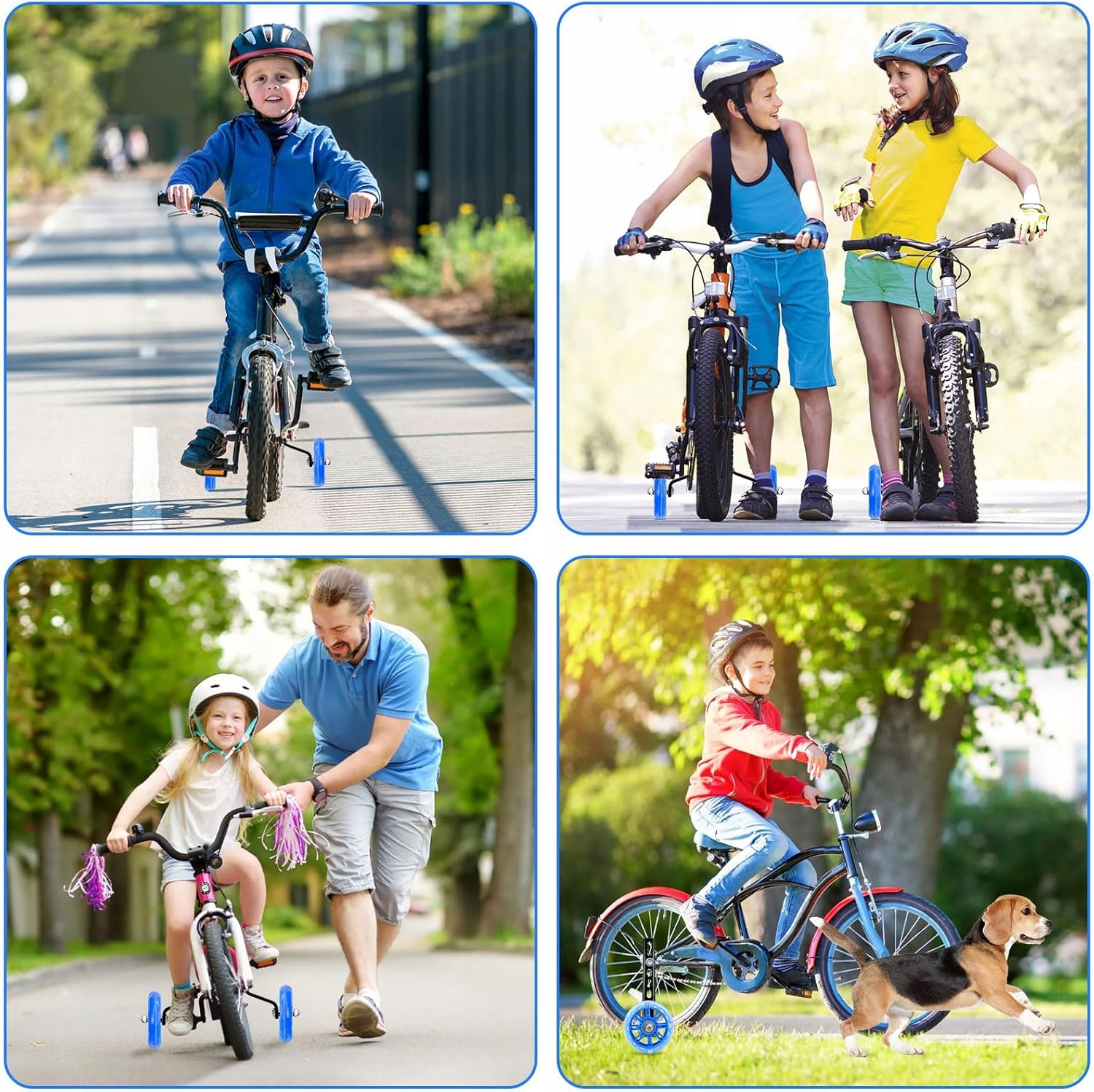 Наші універсальні тренувальні колеса діаметром 4,33 дюйма відповідають дитячим велосипедам з розміром 12/14/16/18/20 дюймів, одноразових тренувань для велосипедів дозволяють дітям насолоджуватися велосипедом без шуму.