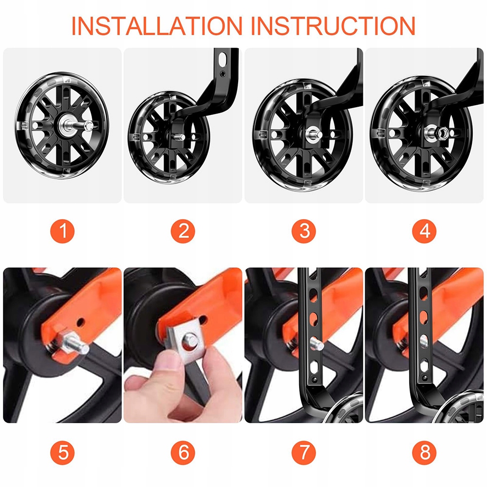 【Використовуйте】 Це допоміжне колесо регулюється і підходить для велосипедів з діагоналі від 12 до 20 дюймів. Ви можете налаштувати розмір, щоб краще адаптувати велосипед до своєї дитини.