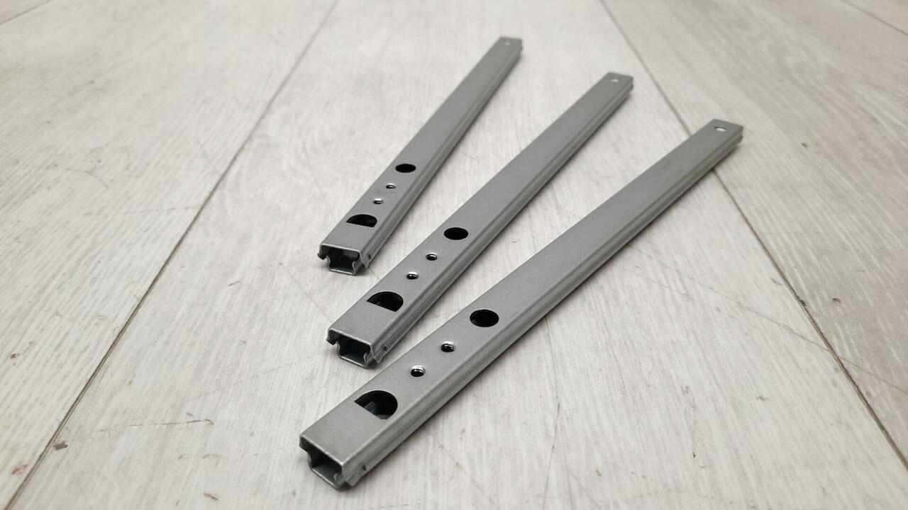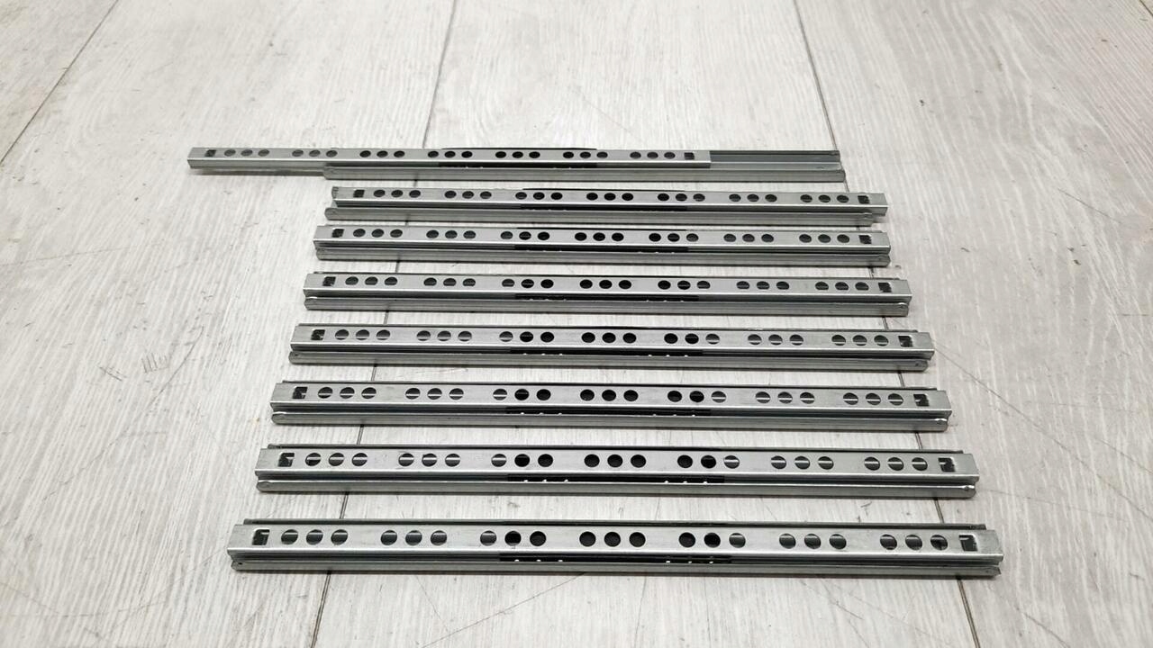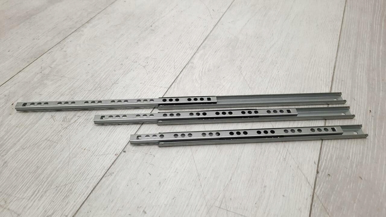 Кульові напрямні з можливістю часткового висування з оцинкованої сталі . Цей тип направляючої вставляється в отвір шириною 17 мм збоку шухляди. Максимальне навантаження на шухляду 10 кг.