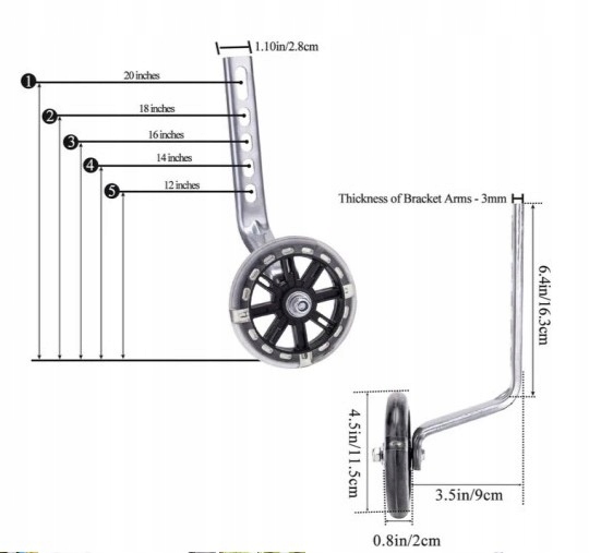 - Колесо для тренувань регулюється та підходить для велосипедів діаметром 12-20 дюймів,що дозволяє вам підберіть розмір відповідно до велосипеда вашої дитини.