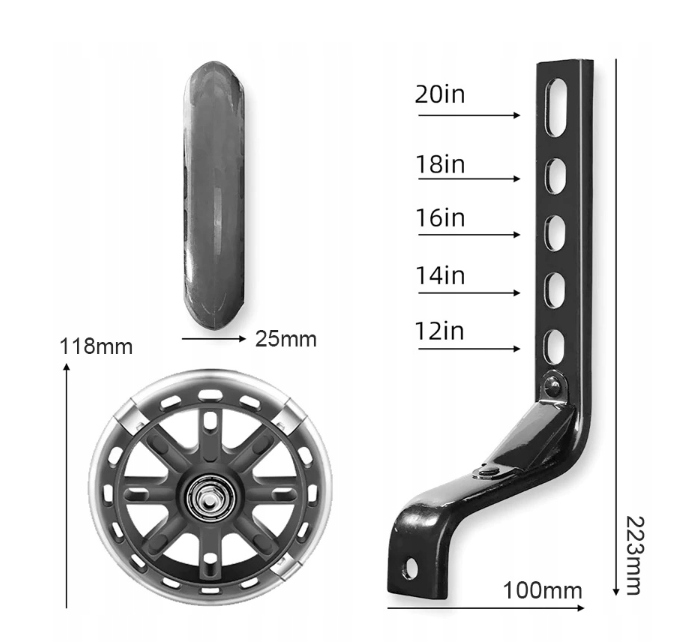 Підходить для початківців і дітей, які бояться падінь Тренувальне колесо регулюється і підходить для велосипедів 12-20 дюймів, що дозволяє регулювати розмір відповідно до вашого велосипеда дитина