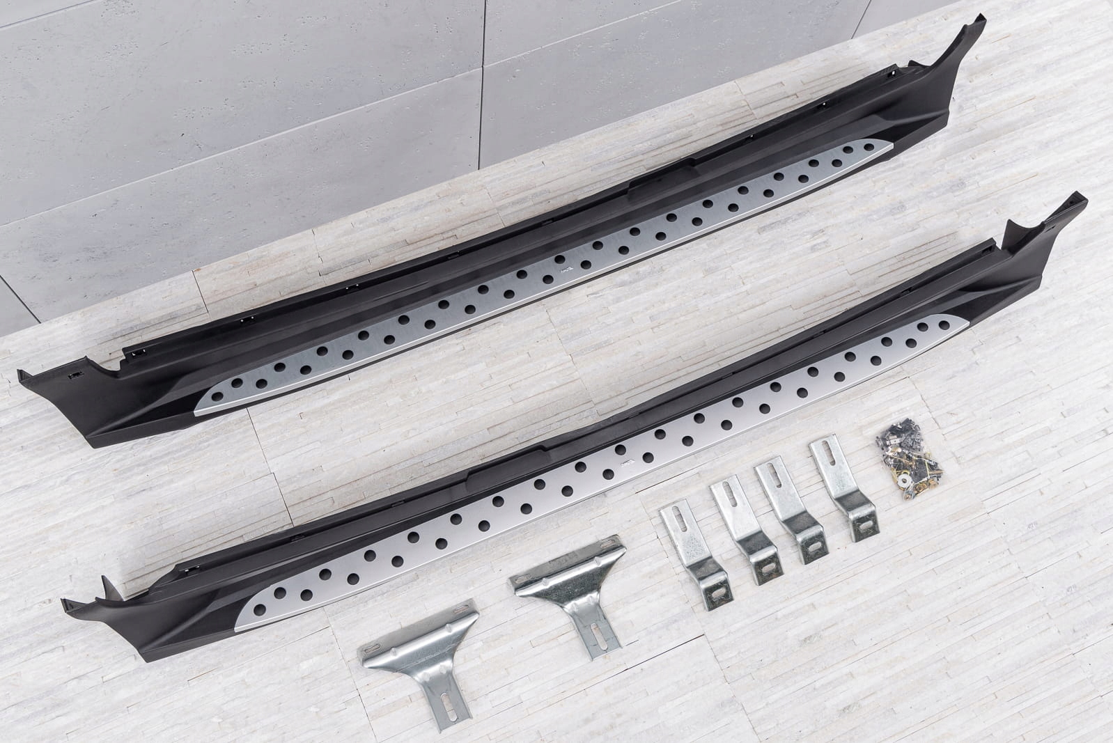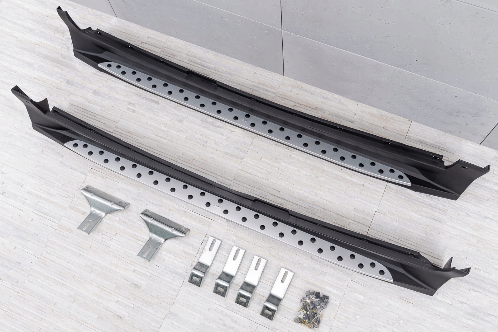 Встановлення ступенів не потребує свердління додаткових отворів, що дозволяє зберегти оригінальні точки кріплення та гарантує неінвазивний монтаж. У набір входить набір підніжок (права і ліва), елементи збірки та інструкція. Проте ми рекомендуємо професійну збірку в майстерні (з досвіду ми знаємо, що найкраще скористатися послугами малярних або кузовних майстерень, тому що на цих заводах найчастіше встановлюють планки, плінтуса та сходинки , тому складання для цих заводів є /b> інтуїтивно зрозумілою дією).