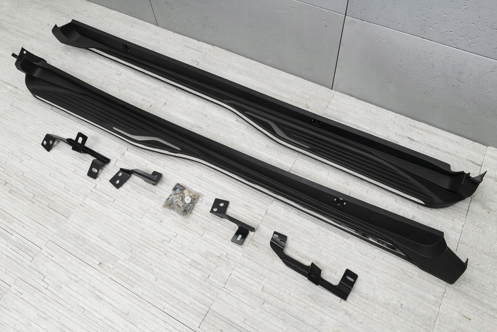 Встановлення ступенів не потребує свердління додаткових отворів, що дозволяє зберегти оригінальні точки кріплення та гарантує неінвазивний монтаж. У набір входить набір підніжок (права і ліва), елементи збірки та інструкція. Проте ми рекомендуємо професійну збірку в майстерні (з досвіду ми знаємо, що найкраще скористатися послугами малярних або кузовних майстерень, тому що на цих заводах найчастіше встановлюють планки, плінтуса та сходинки , тому складання для цих заводів є /b> інтуїтивно зрозумілою дією).