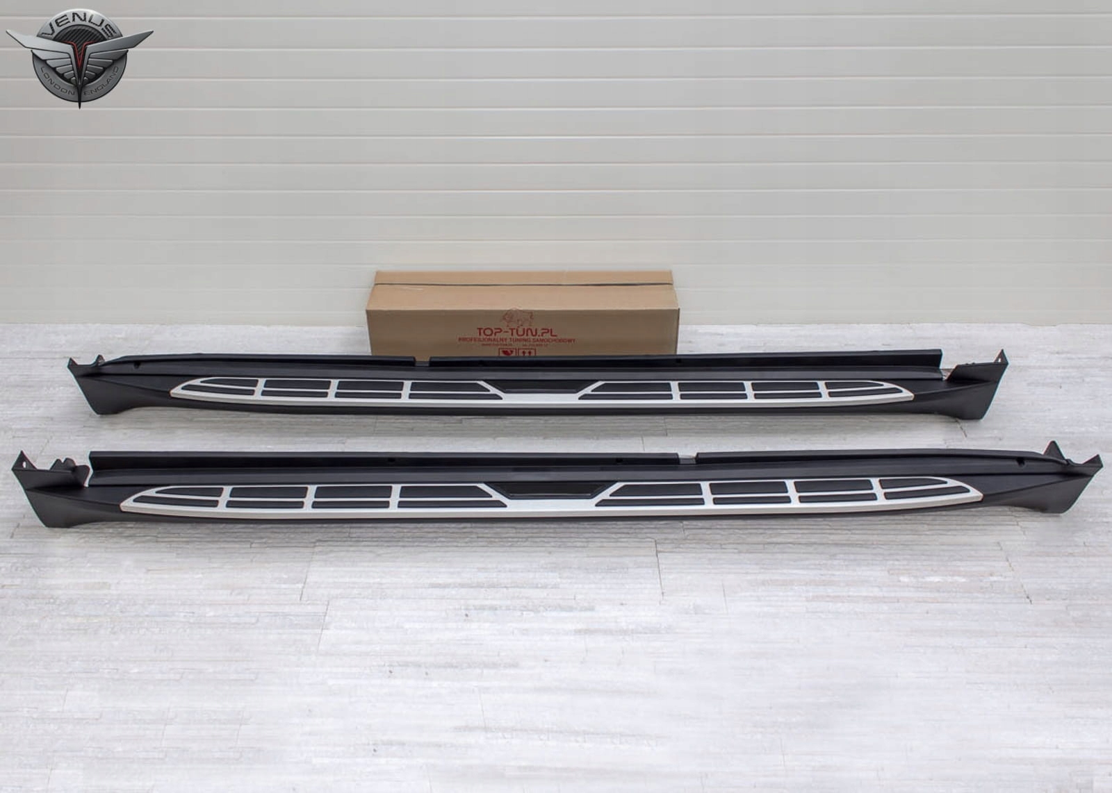 Бічні підніжки були розроблені для підвищення комфорту під час входу та виходу з автомобіля, а також для більш зручного робочого положення під час розміщення вантажу на даху автомобіля. Пороги не тільки забезпечують комфорт, але і підвищують безпеку, що особливо важливо для дітей і людей похилого віку.