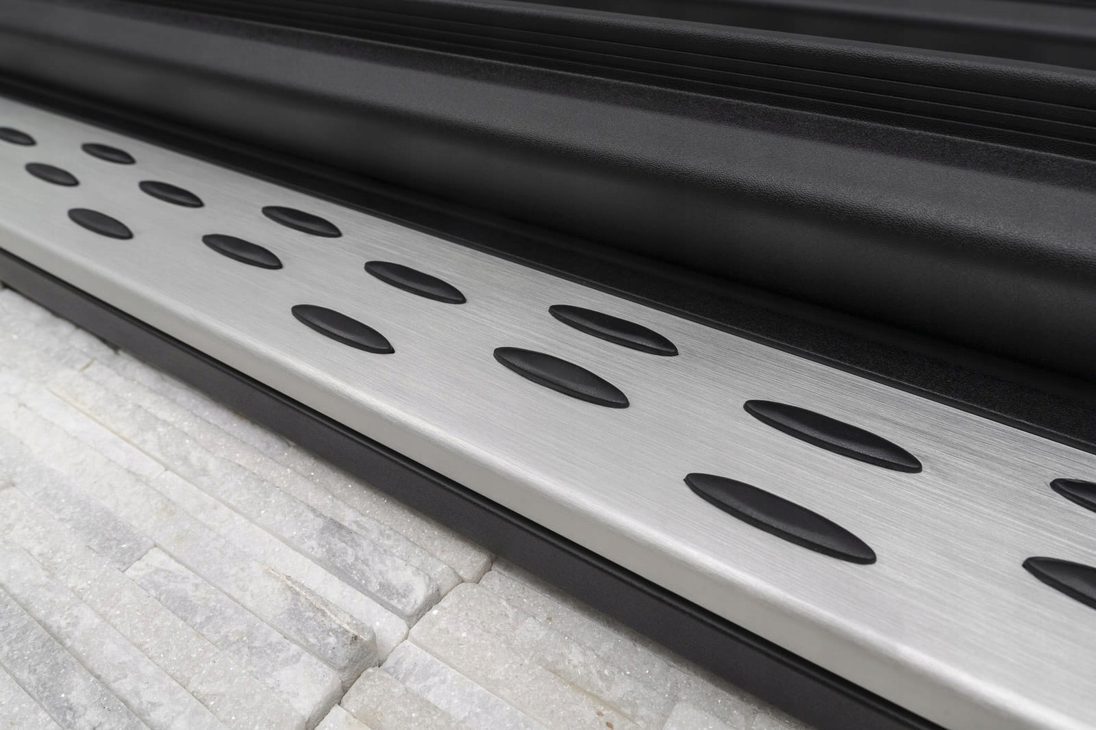 Бічні підніжки для JEEP GRAND CHEROKEE є ідеальне рішення для людей, які цінують комфорт і зручність. Виготовлені з високоякісного алюмінію та автомобільного пластику ABS, вони забезпечують не тільки елегантний зовнішній вигляд, але й стійкість до погодних умов. Завдяки цьому бічні підніжки виходять міцними і довговічними, і при цьому надовго зберігають свій зовнішній вигляд. Бічні підніжки підвищують комфорт посадки та висадки, що особливо корисно для дітей, людей похилого віку або людей з обмеженими можливостями пересування, а також забезпечують більш зручне робоче положення при розміщенні вантажу на даху автомобіля. Вантажопідйомність на одну сторону становить 160 кг, що гарантує, що підніжки витримають набагато більше стандартного навантаження.