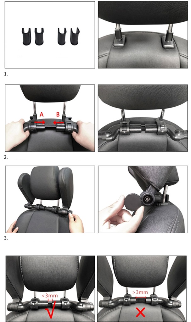 Зверніть увагу, що після встановлення середня відстань між лівим і правим кронштейнами підголівника не повинна перевищувати 3 см. якщо він перевищує 3 см, відрегулюйте гачок кронштейна з обох кінців!
