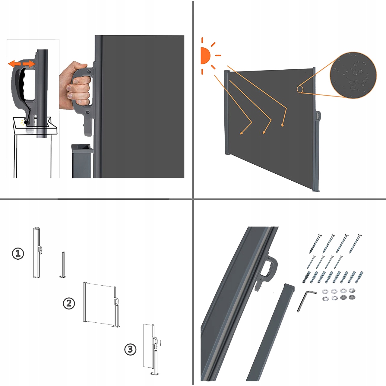 Екран надзвичайно функціональний і простий у використанні. Відрізняється унікальним дизайном і довговічністю. Завдяки своїй стабільній і міцній структурі він може витримати численні пориви вітру.