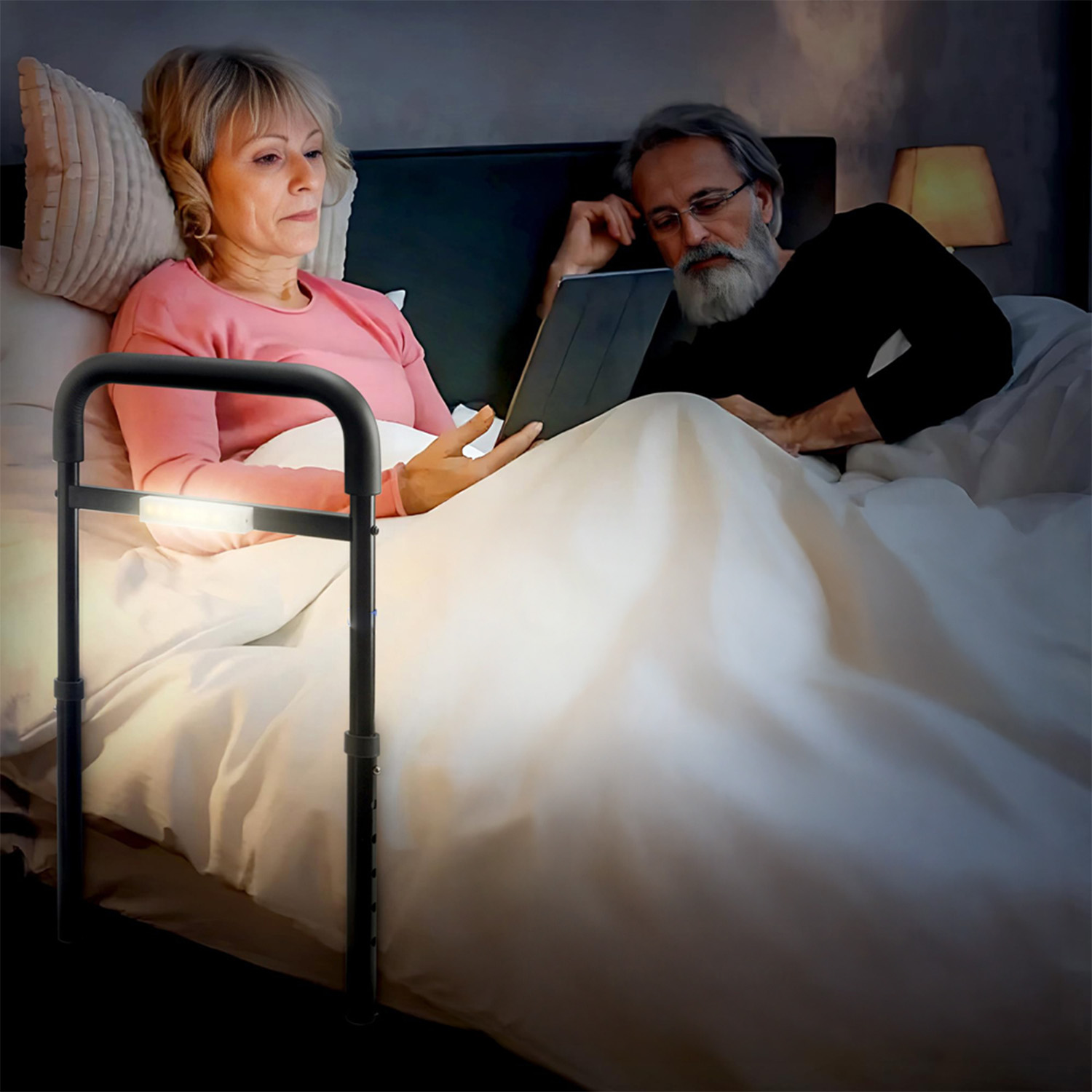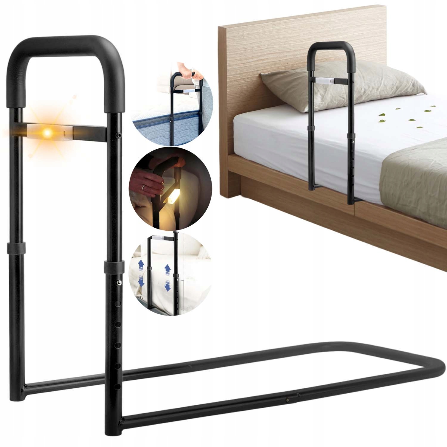🛌🧓 🛌🧓 Строппл, поручники для людей похилого віку, допомога у вході в ліжко, поручники з коригуванням висоти для людей похилого віку, світлодіодним датчиком світла, щоб запобігти падінню вночі, безпеці та стабільності