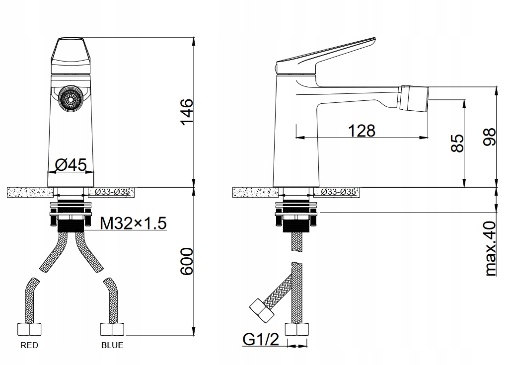 ✅Монтажний отвір: стандартний 35 мм