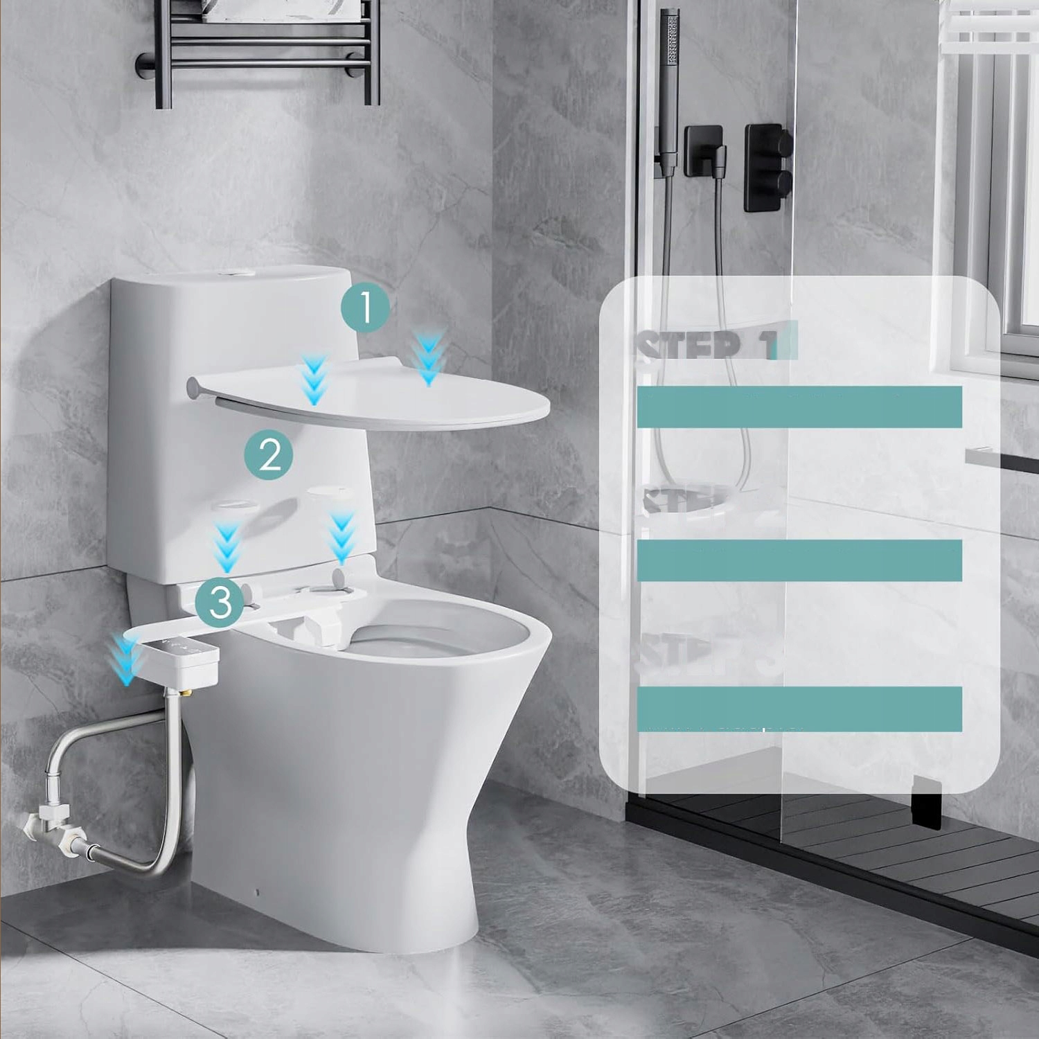 Універсальне використання: ця неелектронна насадка для біде з високоякісними фітингами сумісна з більшістю унітазів. Він встановлюється за лічені хвилини на стандартних унітазах із подвійним змивом, без допомоги сантехніка. Проста конструкція робить його ідеальним для всіх у вашій родині, включаючи дітей, людей похилого віку та людей з особливими гігієнічними потребами.