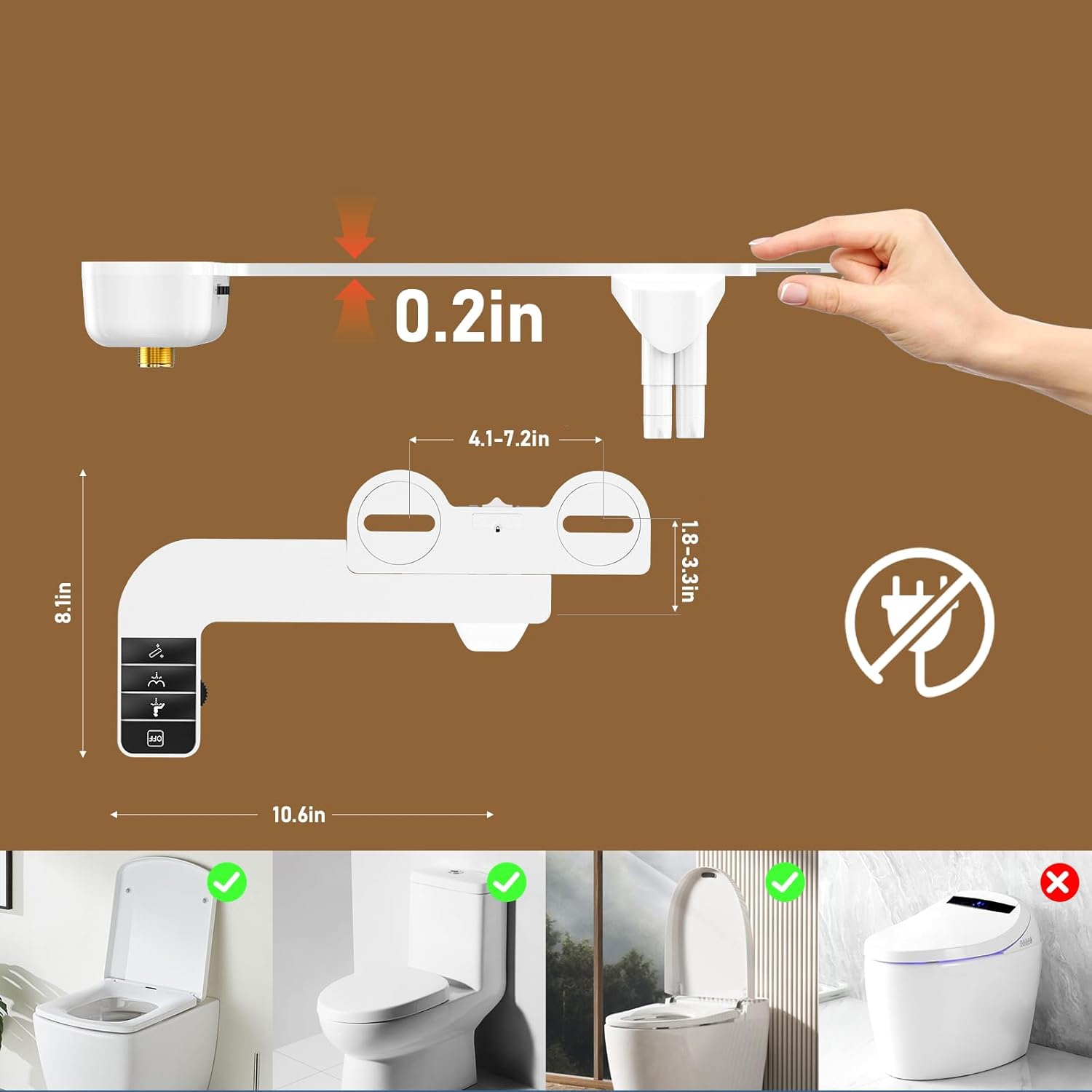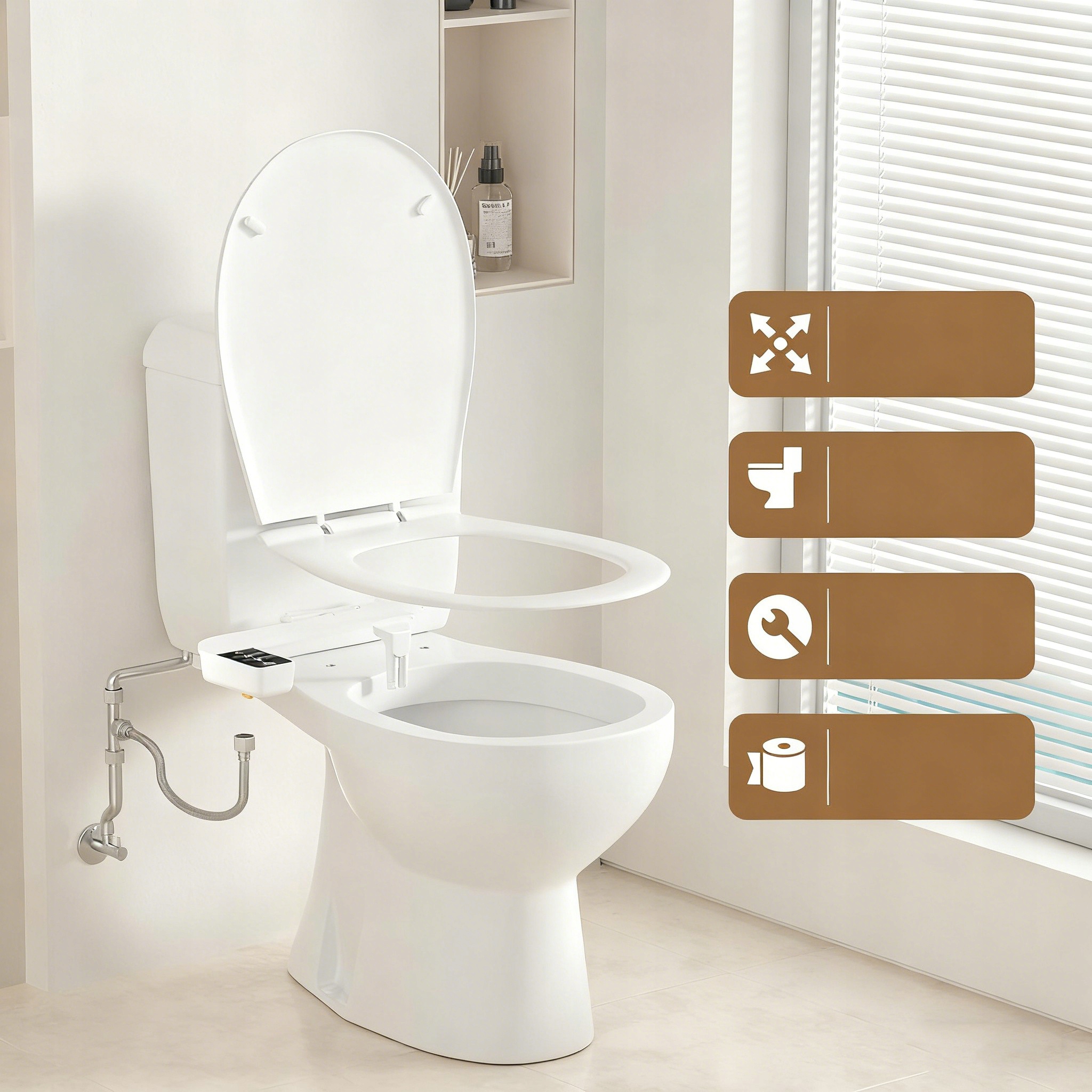 💧💧💧Широка сумісність: неелектронний аксесуар для біде з високоякісними фітингами сумісний із більшістю унітазів. Їх можна встановити на звичайний двоходовий унітаз за кілька хвилин без допомоги сантехніка. Завдяки своїй простій конструкції він ідеально підходить для членів сім'ї будь-якого віку, включаючи дітей, людей похилого віку та людей з особливими гігієнічними потребами.