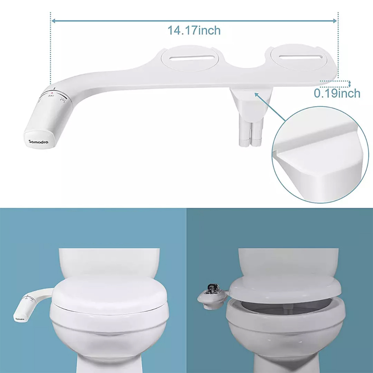 Насадка для біде, ультратонка, неелектрична насадка для біде для унітазу з подвійними насадками (спереду і ззаду), економить папір, легке керування, сидіння для унітазу, душ для миття сідниць (білий)🔥🔥🔥