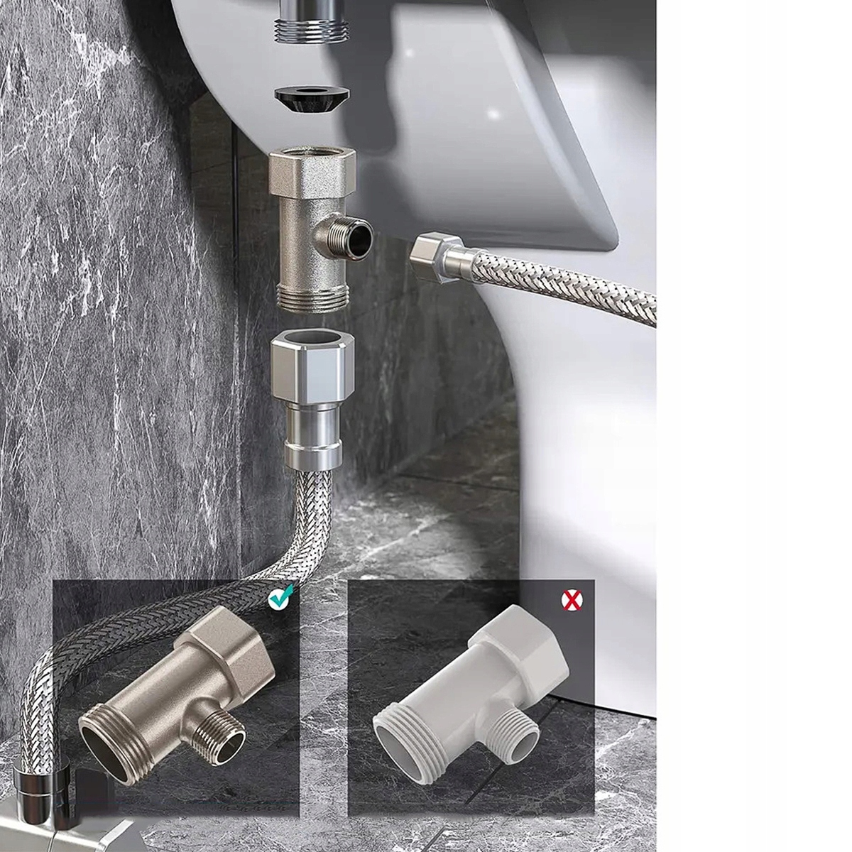 Ефективний та довговічний: Bidet YouKuke виготовлений з екологічно чистих матеріалів ABS (Acrylonitril-Butadien-Stryren). До аксесуарів належать 1 -кратний трійник з латуні, 1x шланг холодної води, виготовлений із сталевої сітки (70 см), 1x ущільнювальну стрічку PTFE та 1x посібник користувача.