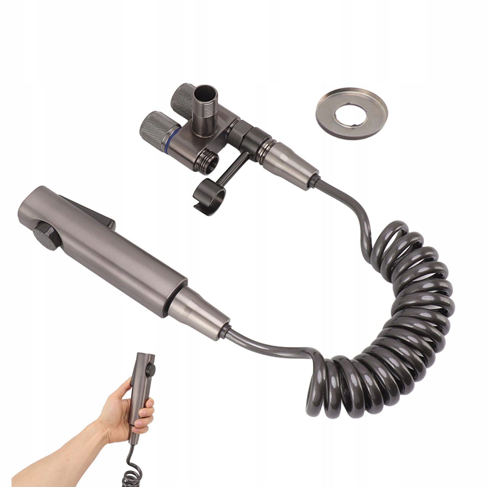 2. Прекрасний сірий вигляд: сучасний стиль, сприятливі лінії та м'які криві, цей набір розпилювачів Bidet може додати у ванній кімнаті простий і модний вигляд.