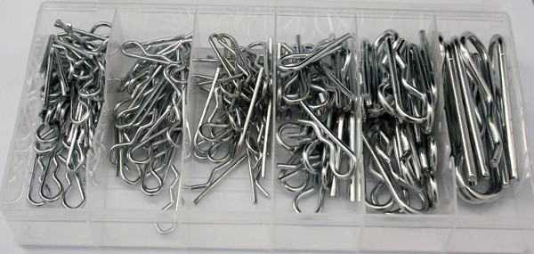 Набір хромованих штифтів, виготовлених із пружинної сталі. 150 штук у різних розмірах, розміщені в зручному в'яжучому.