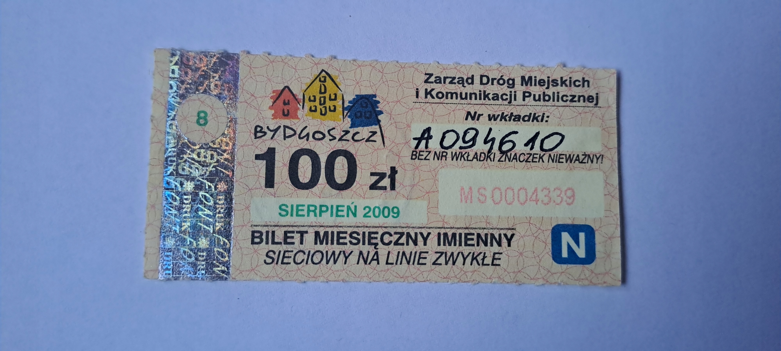 Щомісячний штамп квитка Bydgoszcz 08/2009