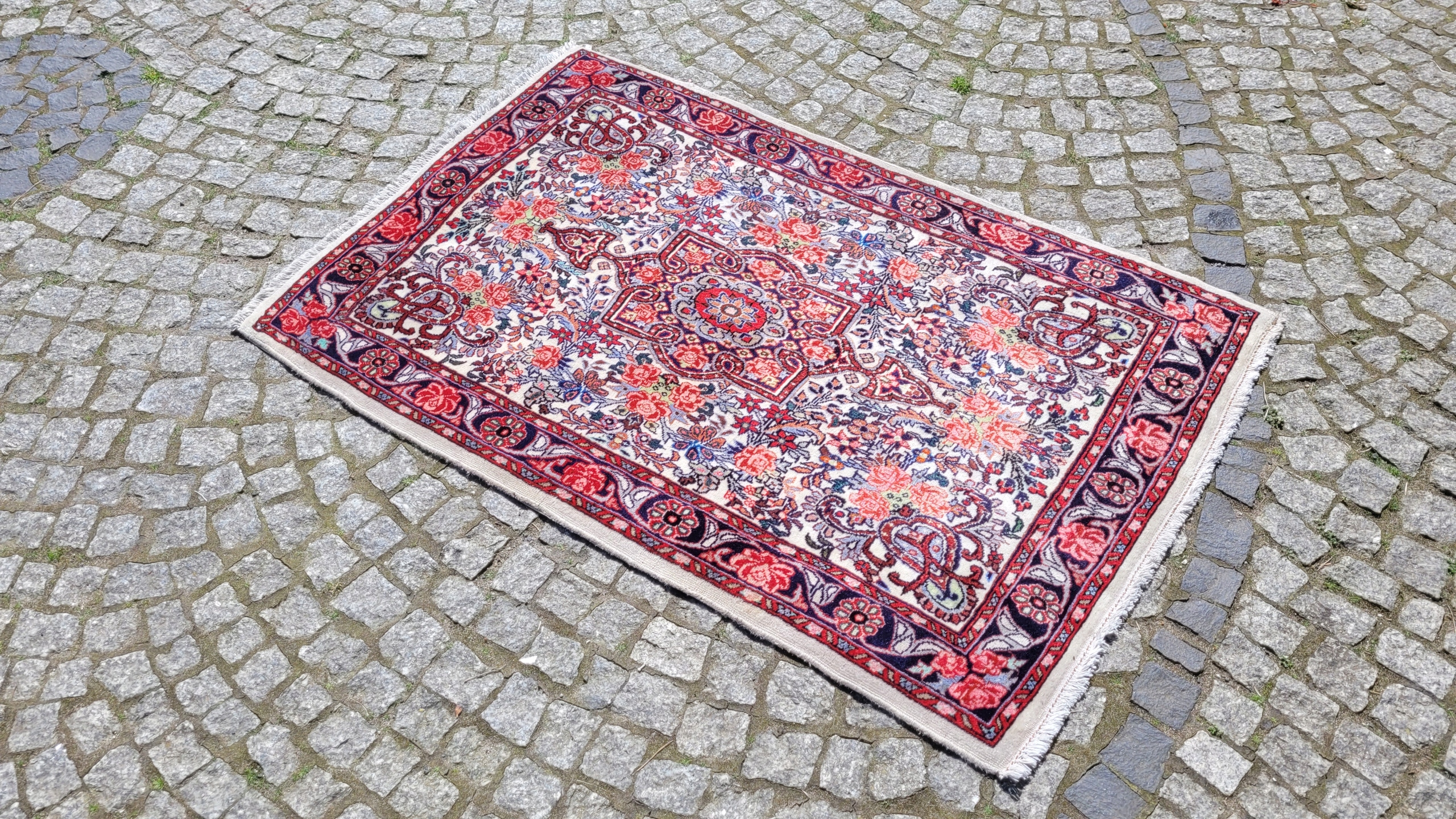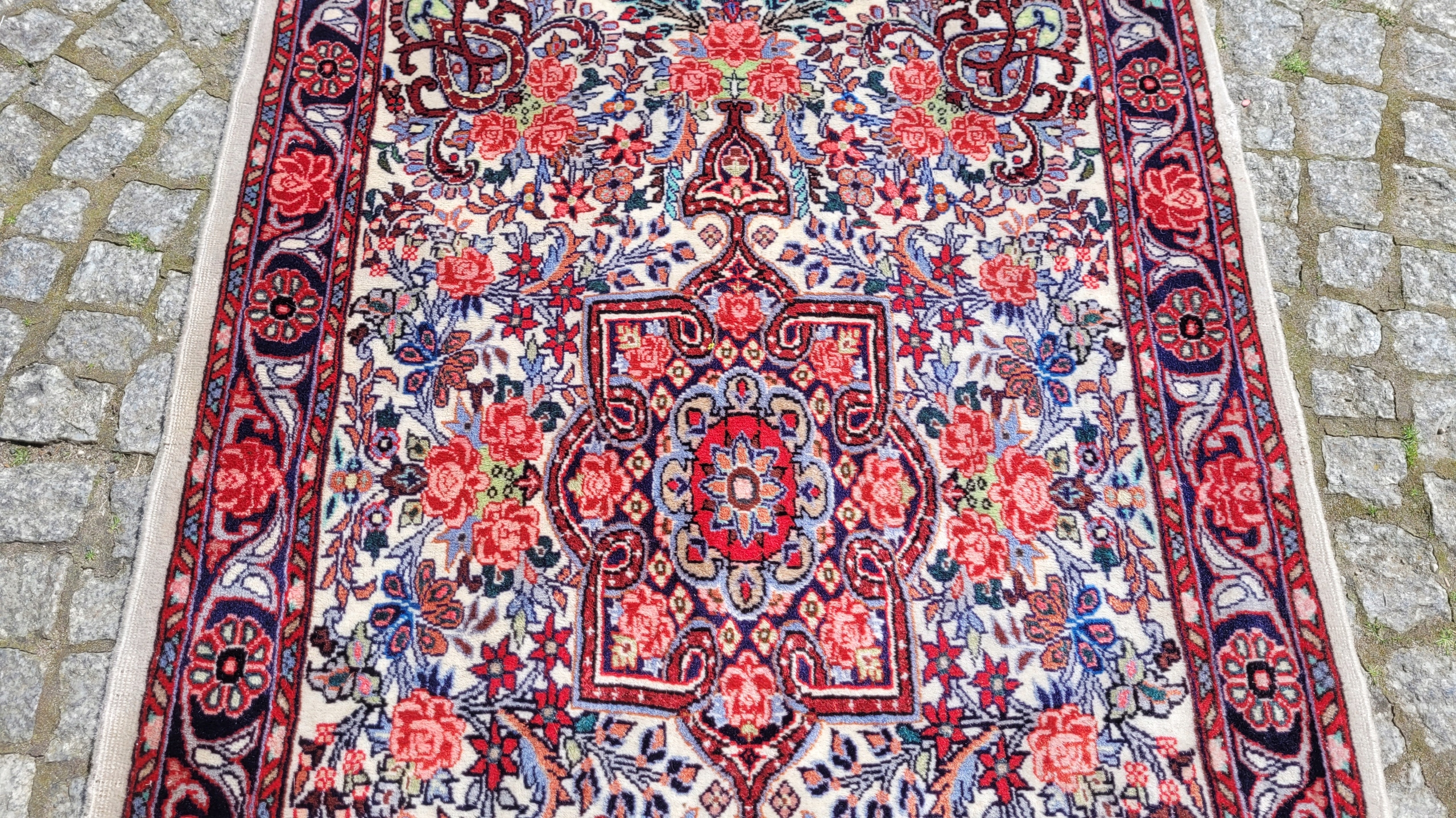 Перський килим біджар. Виткана вручну з вовни найвищої якості. Характеризується щільним флісом, красивими кольорами та візерунками. Він у дуже хорошому стані, видно на фотографіях.