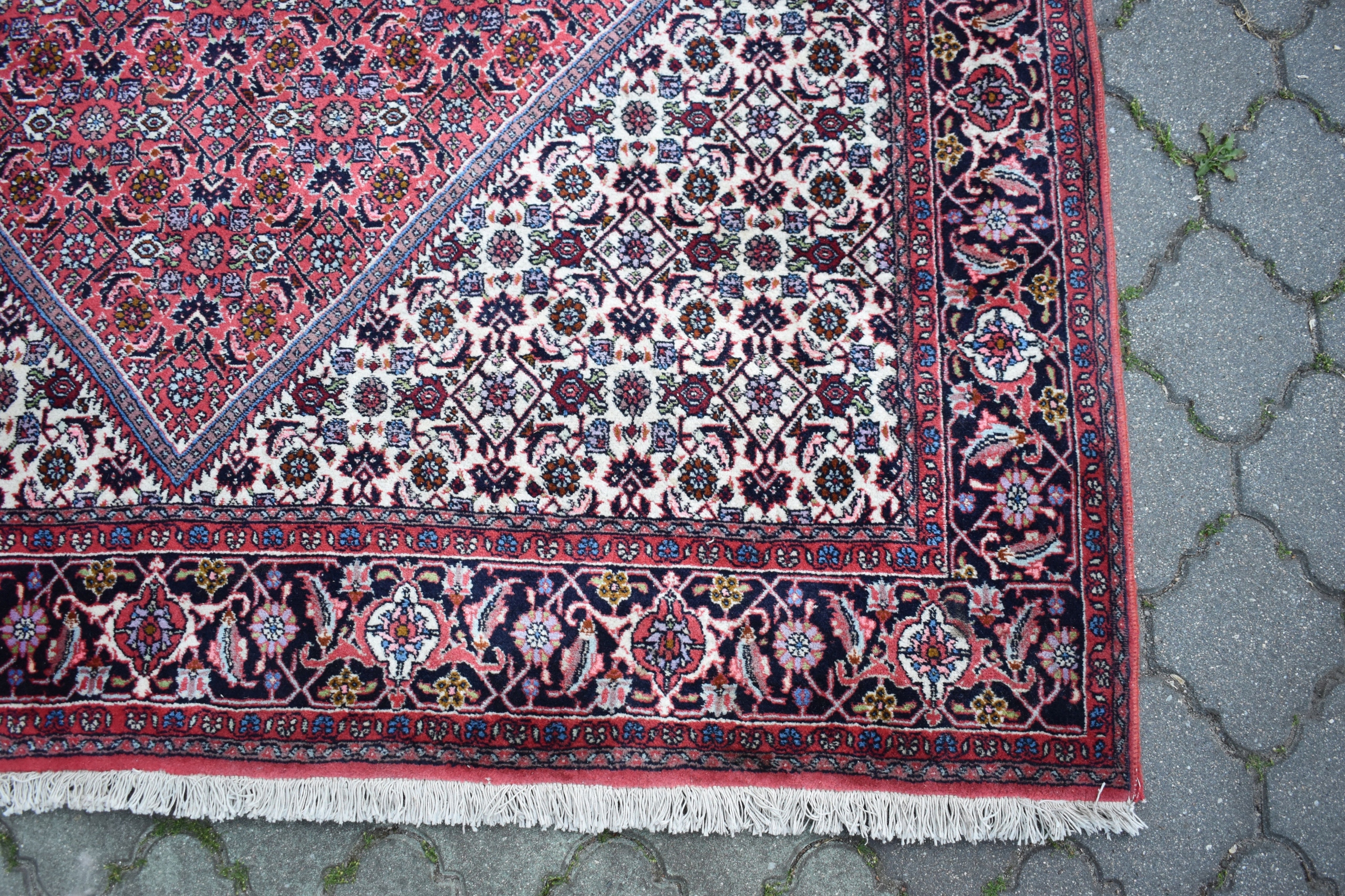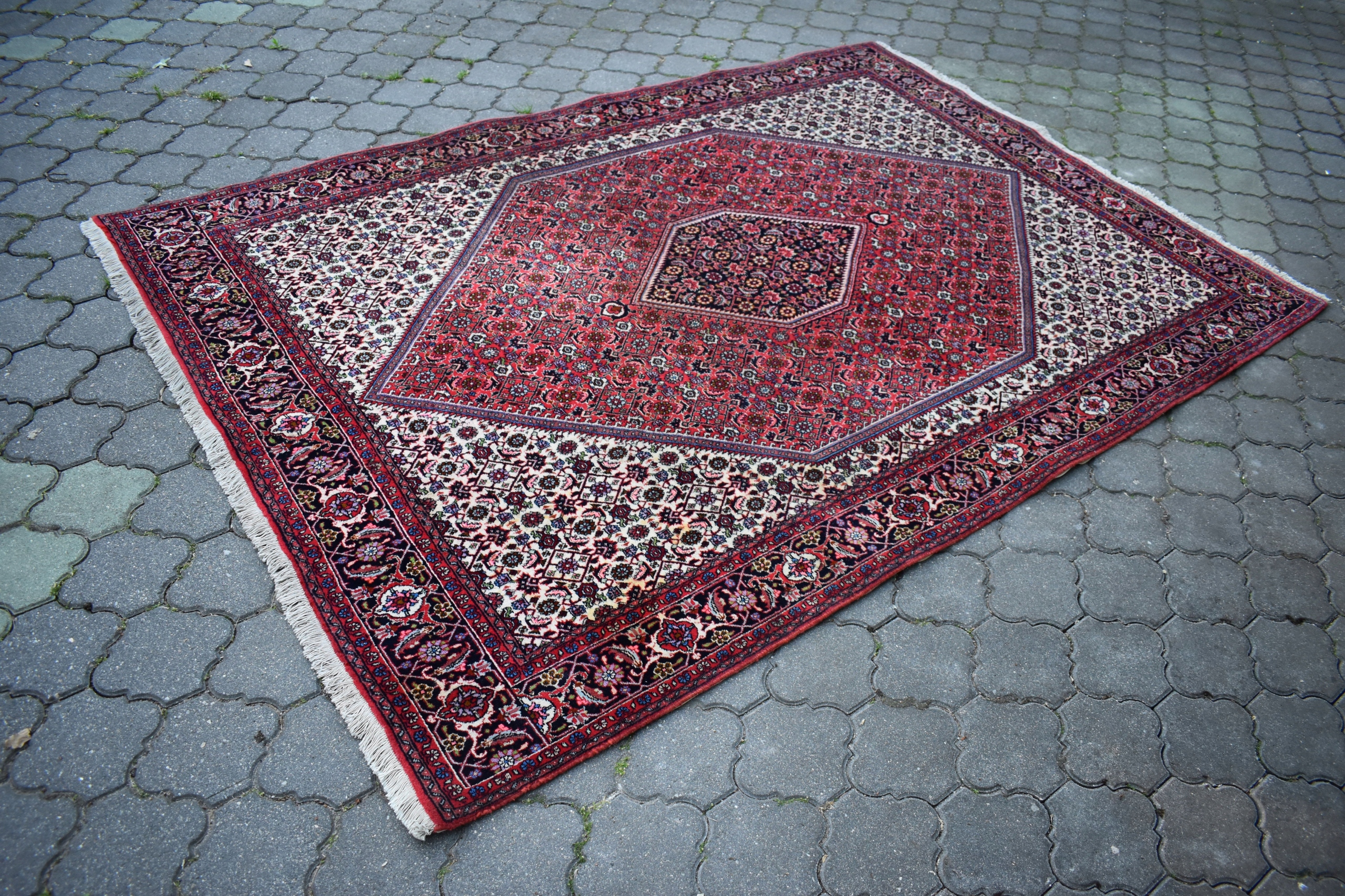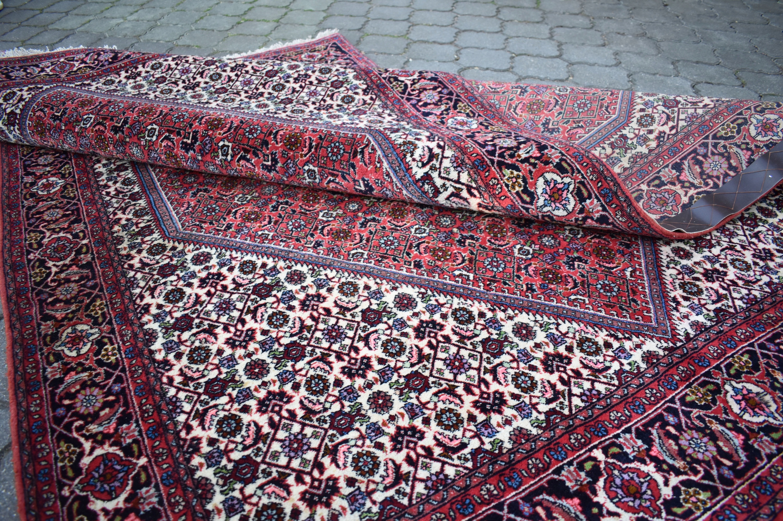 На наступному аукціоні я маю запропонувати вам цінний перський килим ручної роботи складної ручної роботи BIDJAR TAKAB - Made in Iran! Ковролін преміум клас, найвища якість. Килим оригінально оброблений вузликом з одного боку та бахромою з іншого.