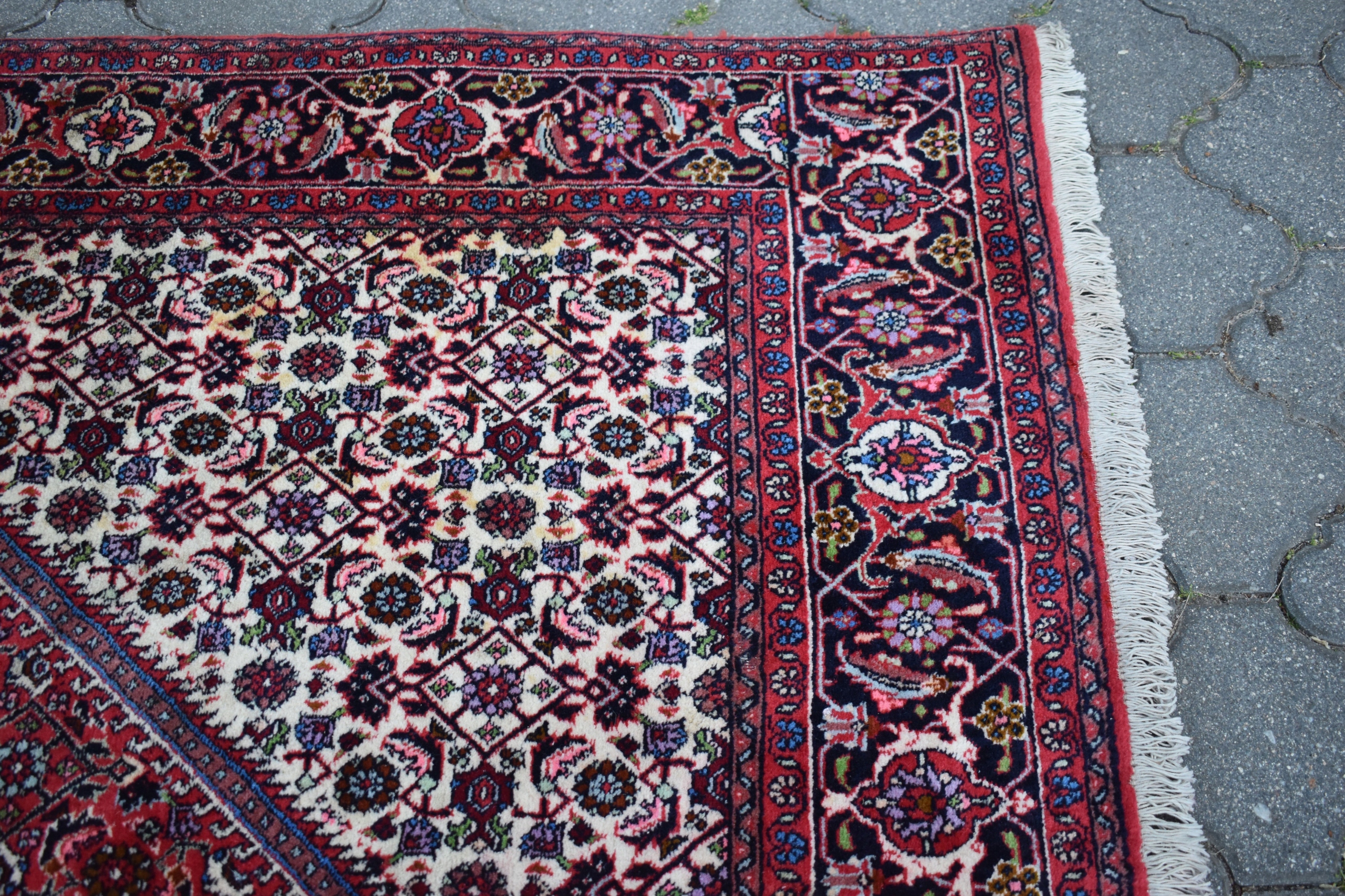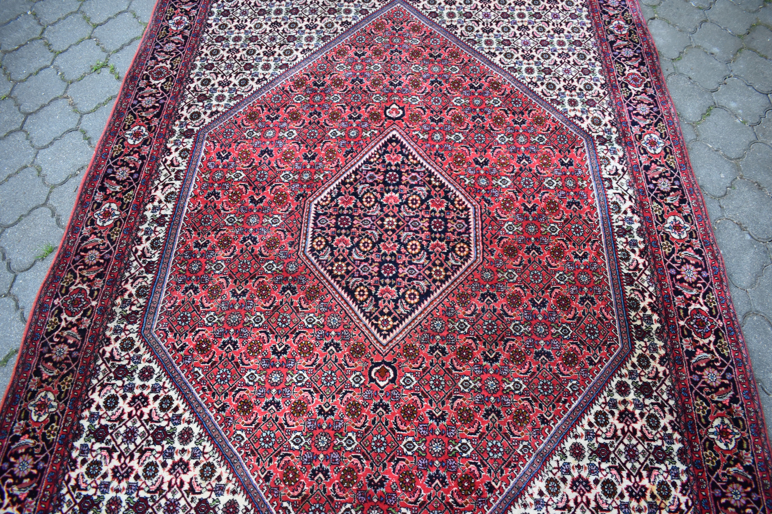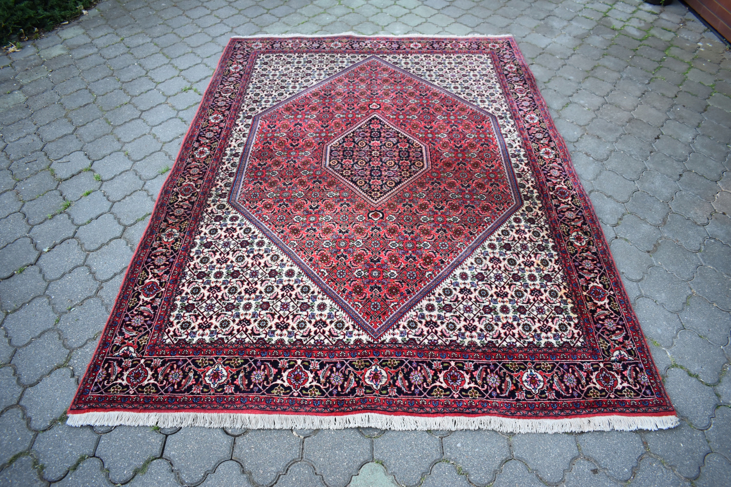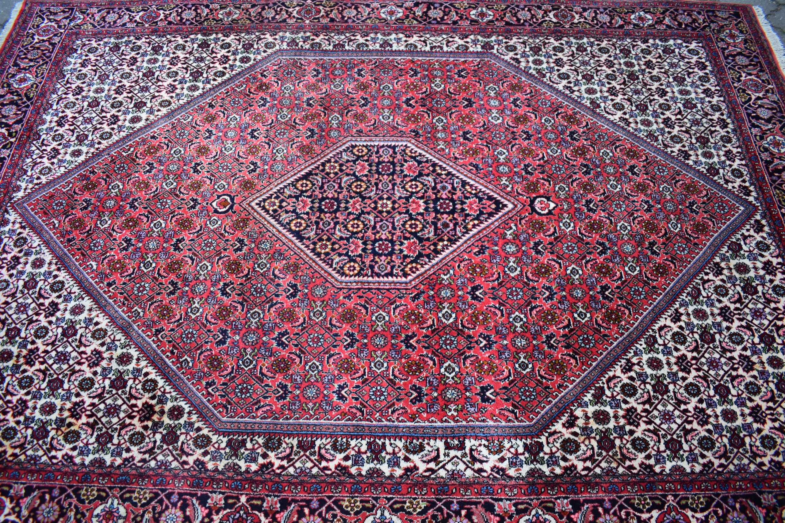 На наступному аукціоні я маю запропонувати вам цінний перський килим ручної роботи складної ручної роботи BIDJAR TAKAB - Made in Iran! Ковролін преміум клас, найвища якість. Килим оригінально оброблений вузликом з одного боку та бахромою з іншого.