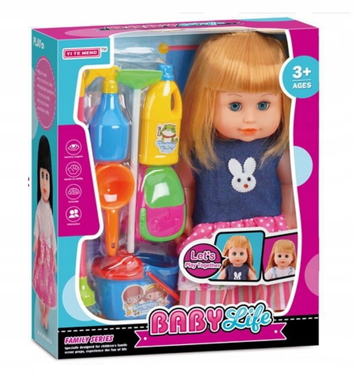 Кожен малюк бере приклад з мами, відтепер весело спільне прибирання набуде нового значення. У набір входить пилососза допомогою якого можна пропилососити ляльковий будиночок. Якщо підлога брудна, можна скористатися шваброю та відром, у яке можна «перелити» рідину з пляшки, що додається, за допомогою мірна чашка. Якщо вікна брудні, не біда, в комплект також входить мийка вікон.