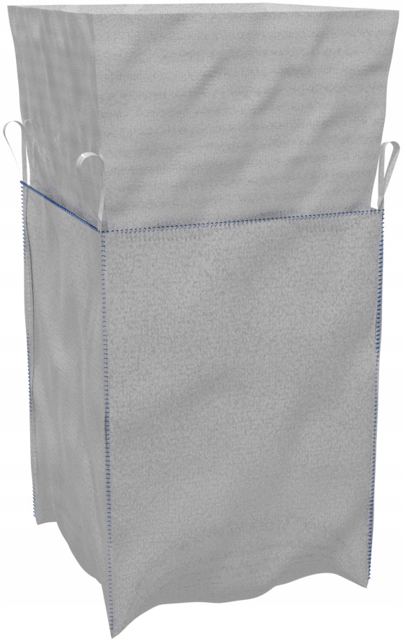 BIG-BAG 90*90*160 CM, 4 hooks 25 cm each, GSM 140 uncoated fabric, apron top, closed flat bottom.