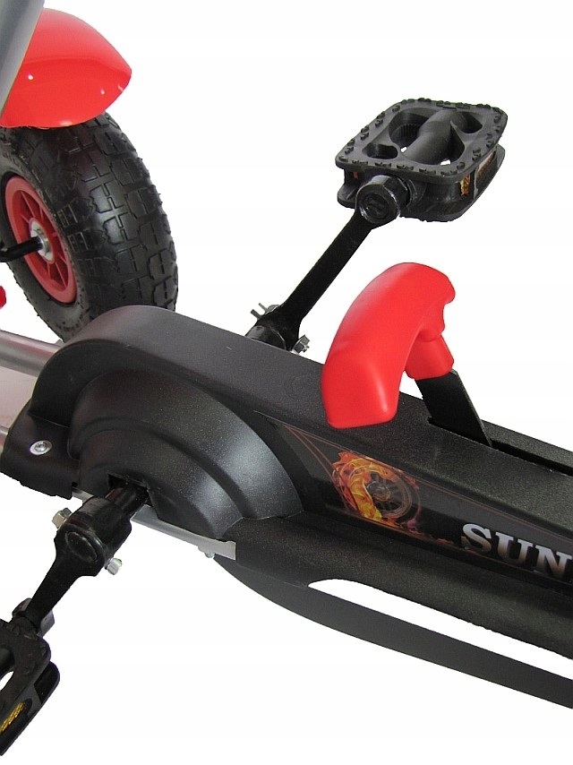 Має великі надувні колеса з бризковиками, що значно підвищує комфорт водіння.