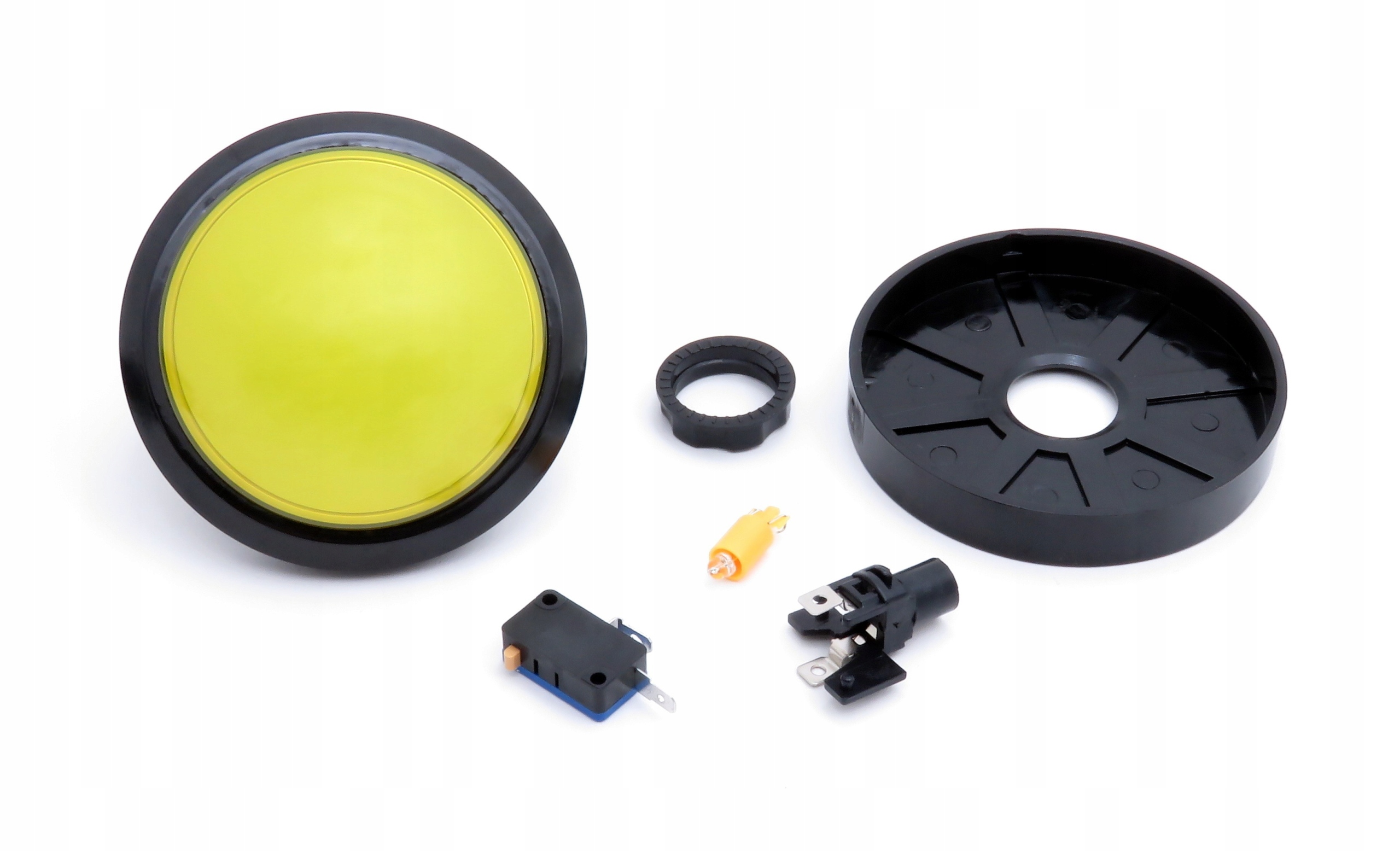 Велика кнопка миттєвого типу діаметром 100 мм зі світлодіодним підсвічуванням. В його основі лежить кінцевий вимикач. Його можна прикріпити до корпусу або столу за допомогою різьбової гайки. Він ідеально підходить для створення власної ігрової машини та добре працюватиме в проектах, які потребують великих кнопок керування.