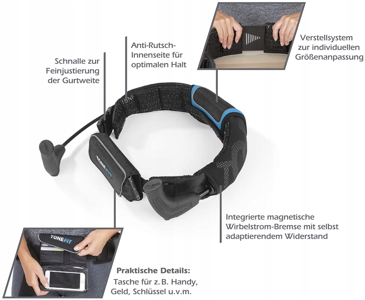 Зазвичай біг набирає популярності. Однак ходьби недостатньо для багатьох, хто хотів би пройти тренування з усього тіла. Розроблений на прикладі перехресного тренера, ToneFit можна використовувати для тренування м’язів живота, грудей, плечей, рук і спини під час бігу. На відміну від тренера, в одному ході потрібні дві сили: гальмівний елемент в поясі працює на тиску та напрузі. ToneFit поєднує в собі тренування, тренування на витривалість та тренування м’язів верхньої частини тіла. ToneFit можна використовувати для бігу в лісі, а також у степу або біговому доріжці в тренажерному залі. Завдяки Tonifit, біг зараз - це інтенсивна підготовка всього тіла!