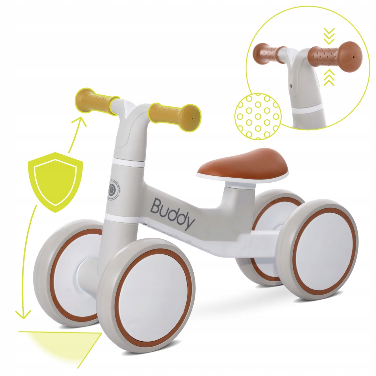 lorelli buddy - ідеальний вибір для активних малюків у віці від 12 до 36 місяців. Він може діяти як перша їзда та перехресний велосипед , підтримуючи розвиток балансу, координації рухової та незалежності . Завдяки 4-колісному дизайну, він забезпечує максимальну стабільність та безпеку , що дає довіру дитині під час руху уроків. низька вага і компактні розміри змушують велосипед легко взяти з собою на прогулянку, до парку або у відпустку. Бадді чудово працює як вдома, так і зовні - це відмінний супутник щоденної діяльності та веселощів!
