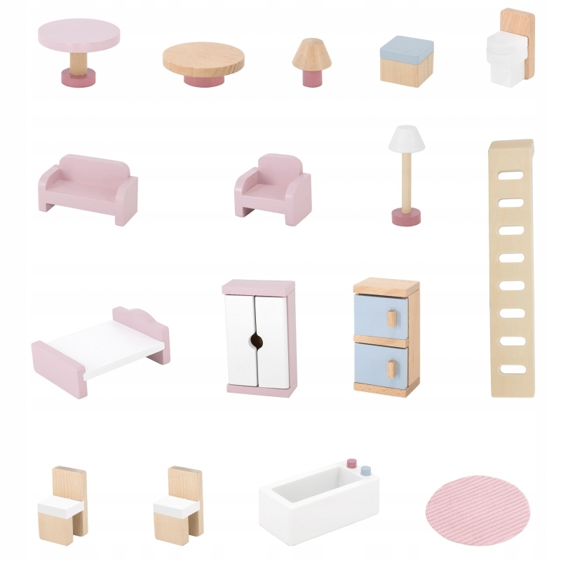 Будинок повністю обладнаний та обладнаний з необхідними аксесуарами. Ваша дитина знайде все, що йому потрібно, щоб створити свій власний, казковий світ: кухня, вітальня та ванна кімната та затишна спальня, , які знаходяться на другому поверсі . Кожна кімната була ретельно розроблена та обладнана меблями та аксесуарами. Набір заохочує творчість, розвиває уяву та соціальні навички.