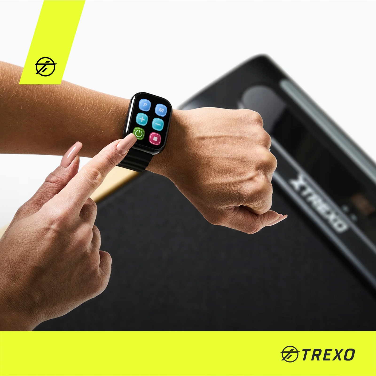 Trexo TXO-W250 бігова доріжка проводиться за допомогою дистанційного керування годинником, що робить операцію надзвичайно зручною та інтуїтивно зрозумілою. Дистанційне управління дозволяє змінити швидкість без переривання руху, що дозволяє повністю зосередитись на вправах і плавно регулювати темп залежно від ваших потреб.