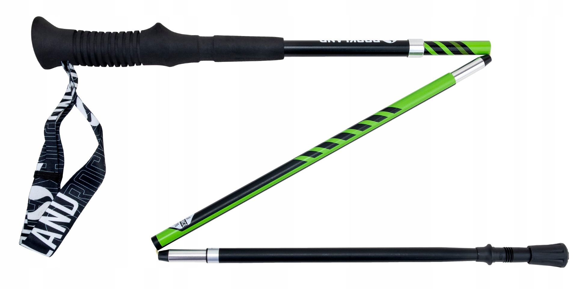 Ручка, виготовлена з профільованого пінополіуретану, має петлі для зап'ястя і правильно профільована анатомічна ручка. Перевагою цього матеріалу також є здатність вбирати піт з внутрішньої сторони руки, а злегка шорстка - пориста текстура забезпечує міцний хват - запобігає ковзанню палиці навіть у спітнілій руці. Ручка додатково подовжена, що дозволяє змінювати висоту хвата палиці без її регулювання (тут це просто неможливо), що особливо буде оцінено при ходьбі з підйомами. Петлі на зап'ясті виготовлені з профільованої стрічки. Стрічки додатково оброблені м'якими нитками. Внизу ручки встановлена транспортувальна застібка-липучка.