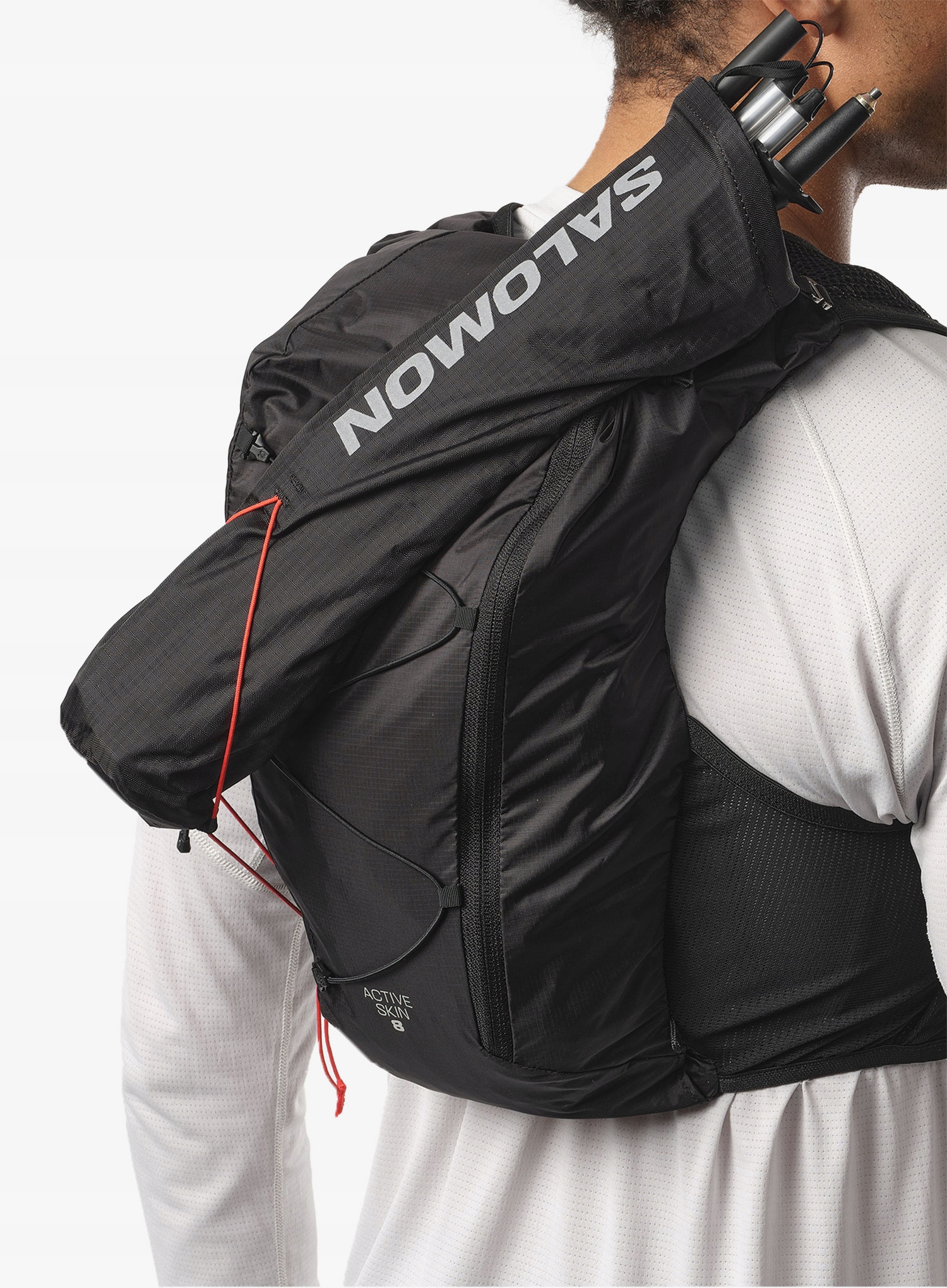 Біговий жилет Salomon Active Skin 8 Set - чорний/метал розроблений для забезпечення максимального комфорту та функціональності під час тренувань. Виготовлена з швидковисихаючих матеріалів, які забезпечують відмінну повітропроникність і зменшують потовиділення спини. Спеціальна сітчаста задня панель додатково підтримує вентиляцію.