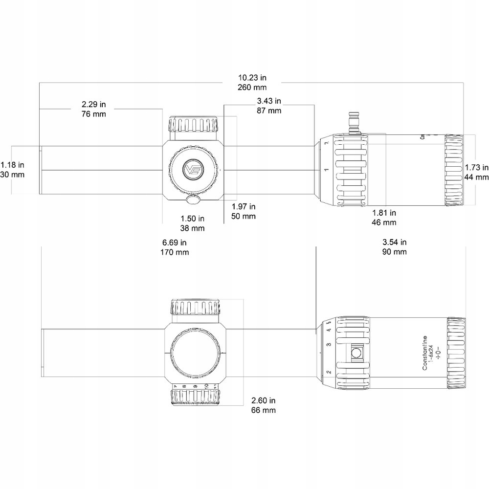 Технічні характеристики телескопа Vector Optics Constantine 1-6x24i Fiber Dot Reticle SFP