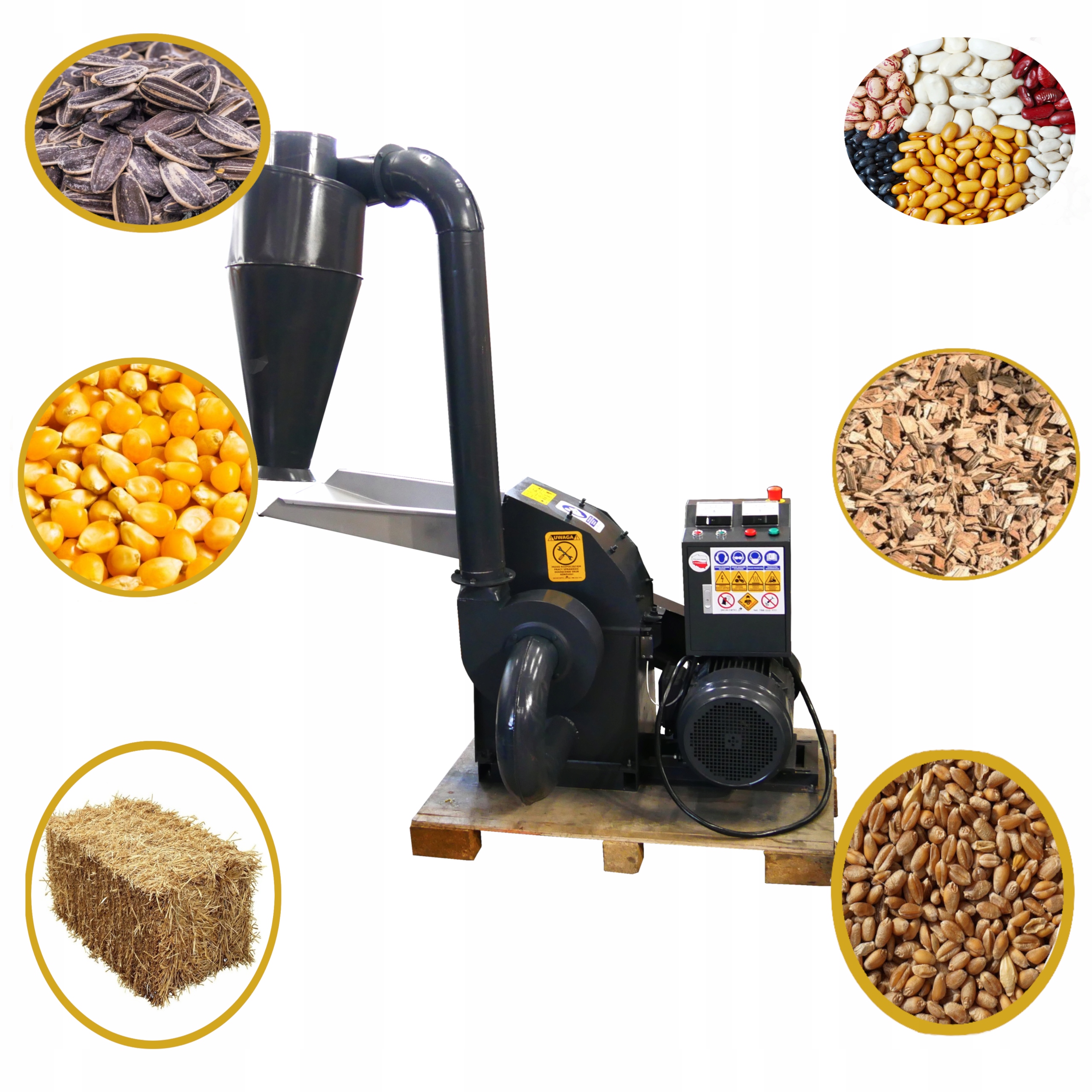 Молотковий млин призначений для подрібнення біомаси, наприклад, соломи, стебел, меблевих дощок, деревини, соломи, листя та багато іншого на ідеальний матеріал для виробництва пелет. Це також ідеальний пристрій для подрібнення харчових продуктів, наприклад, горіхів, рису або інших рослин.