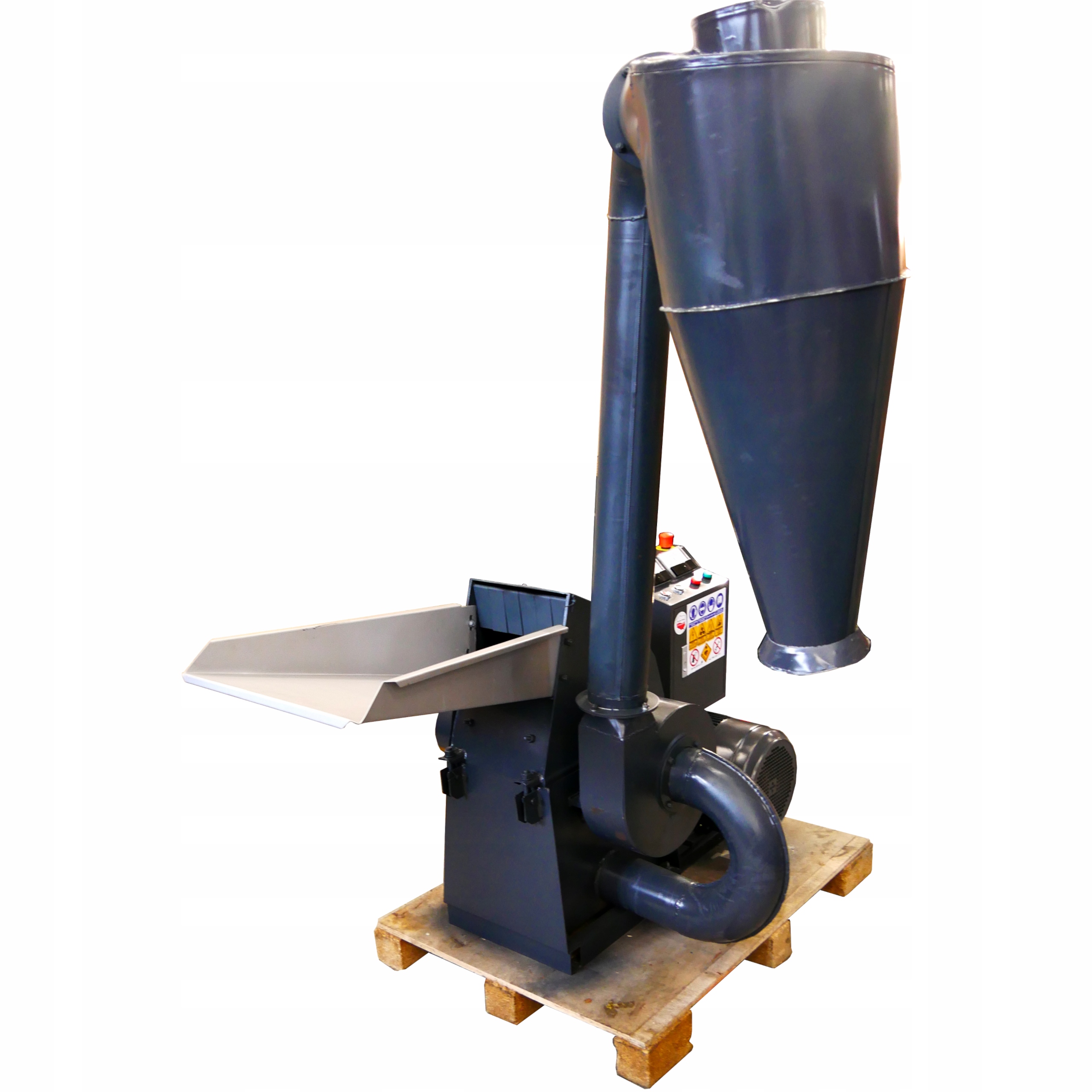 Пристрій призначений для промислової роботи майже 24 години на добу, переробляючи до 500 кг біомаси на годину. В ідеальних умовах молотковий млин може переробляти матеріал для двох грануляторів одночасно!! Єдина умова - товар повинен бути попередньо висушений до вологості 18% і фракції матеріалу до 50 мм.