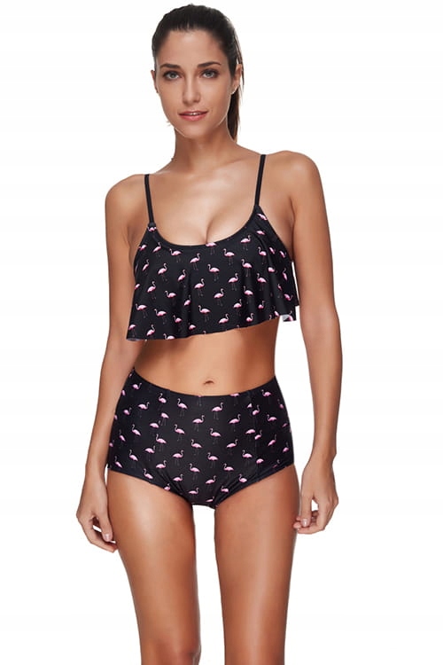 Зручне бікіні з сітчастою підкладкою всередині. Труси - завищена талія. Бюстгальтер на лямках, кишені з внутрішньої сторони чашки, додатковий волан зовні, регульовані лямки.