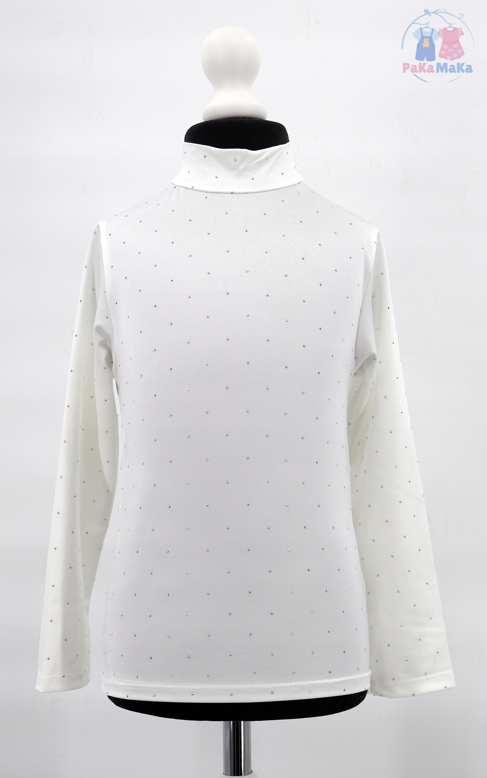 Елегантна біла блузка JETTA з довгим рукавом. По всій блузці прикрашені блискучими стразами, що надає їй характерності та шарму. Блуза дуже універсальна - красиво виглядає і з спідницями, і з широкими брюками, і з легінсами.