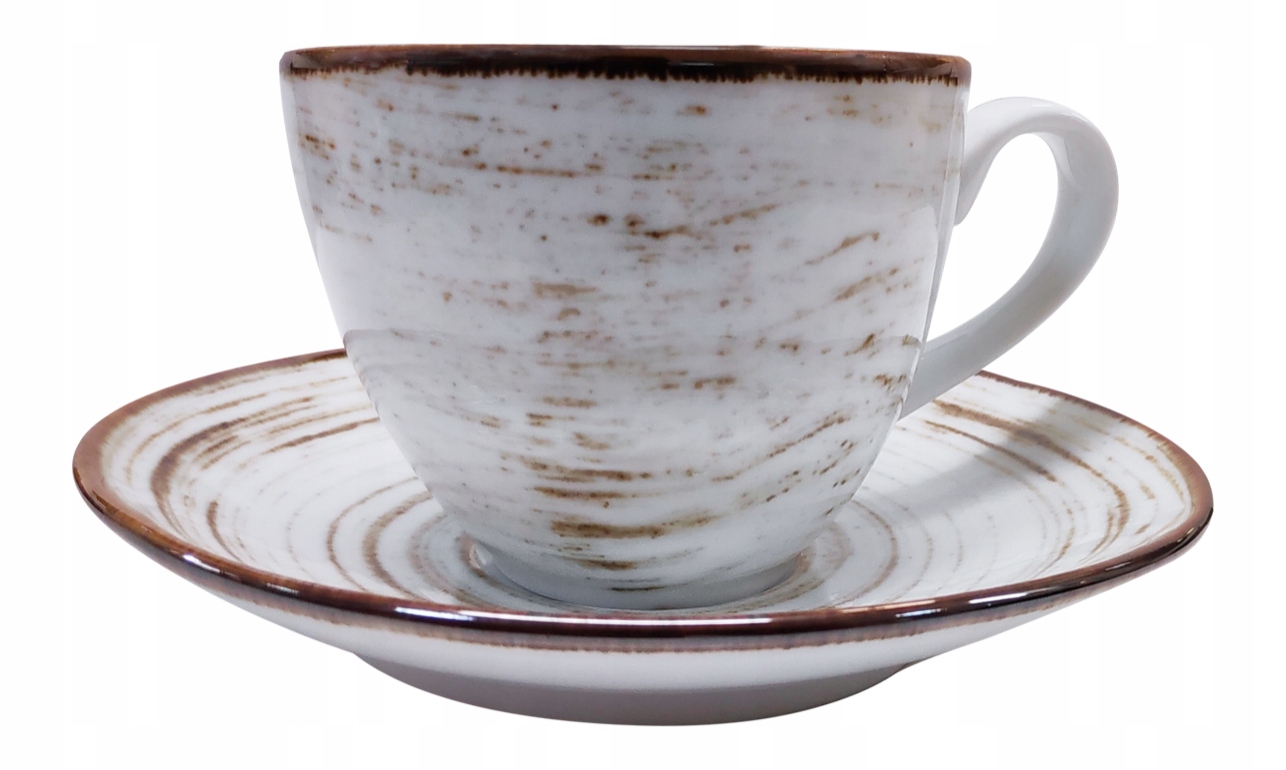 чашка потужністю 300 мл з блюдцею є частиною унікальної колекції. Біла ностальгія - це візерунок у білому кольорі, прикрашений ніжними, темними потертостями. Колекція виготовлена з високоякісного армованого алюмінієвого порцеляни.