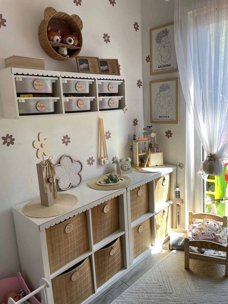 Просто приклейте рюші вздовж полиці й насолоджуйтеся новою версією меблів у дитячій кімнаті. Це маленьке доповнення змінить кімнату та додасть їй шарму.