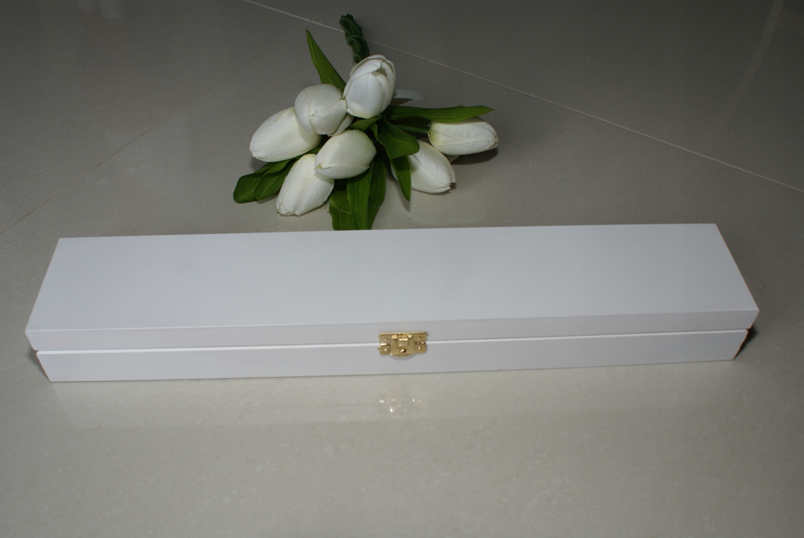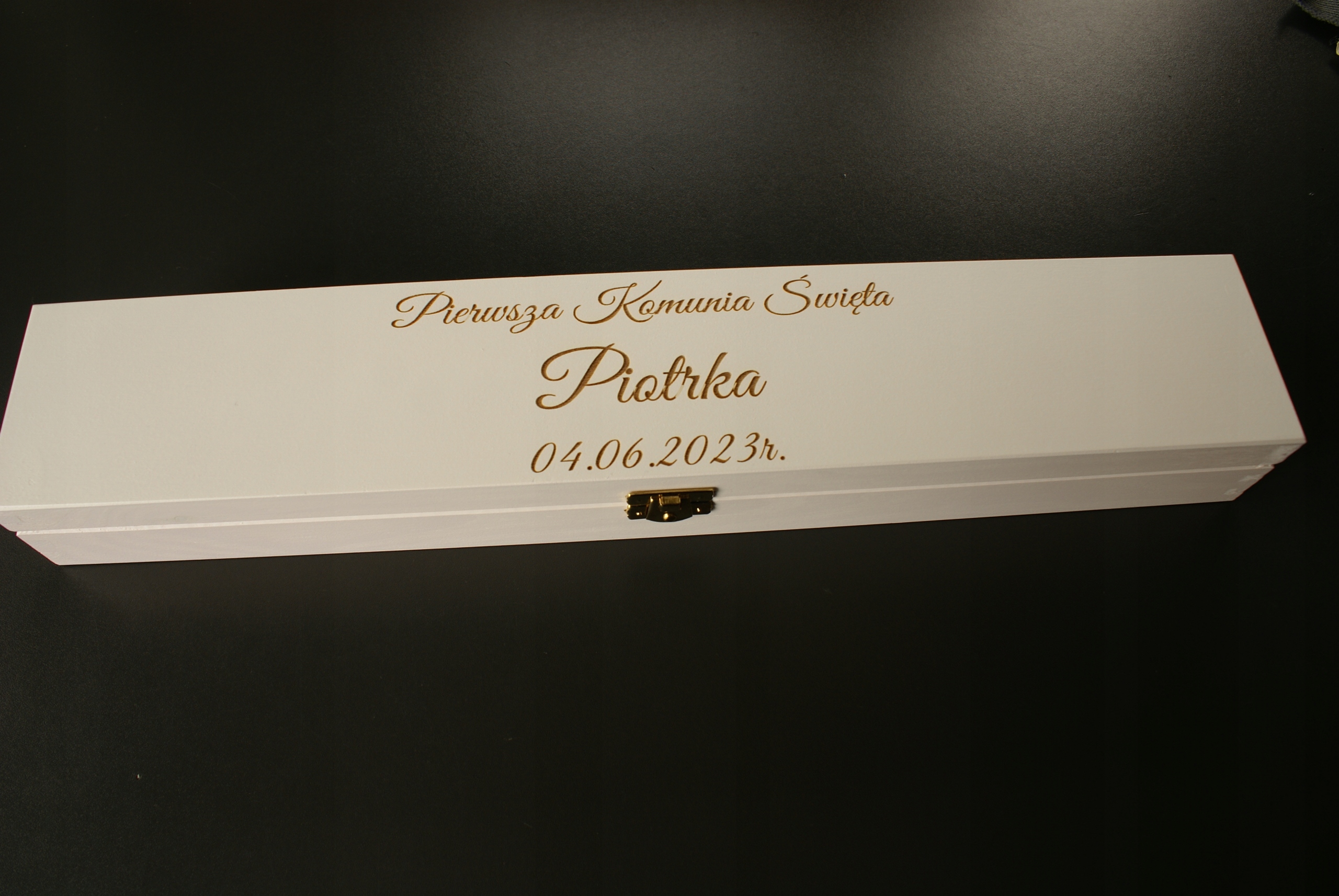БІЛА дерев'яна коробка для свічки з гравіюванням для подарунка на хрещення