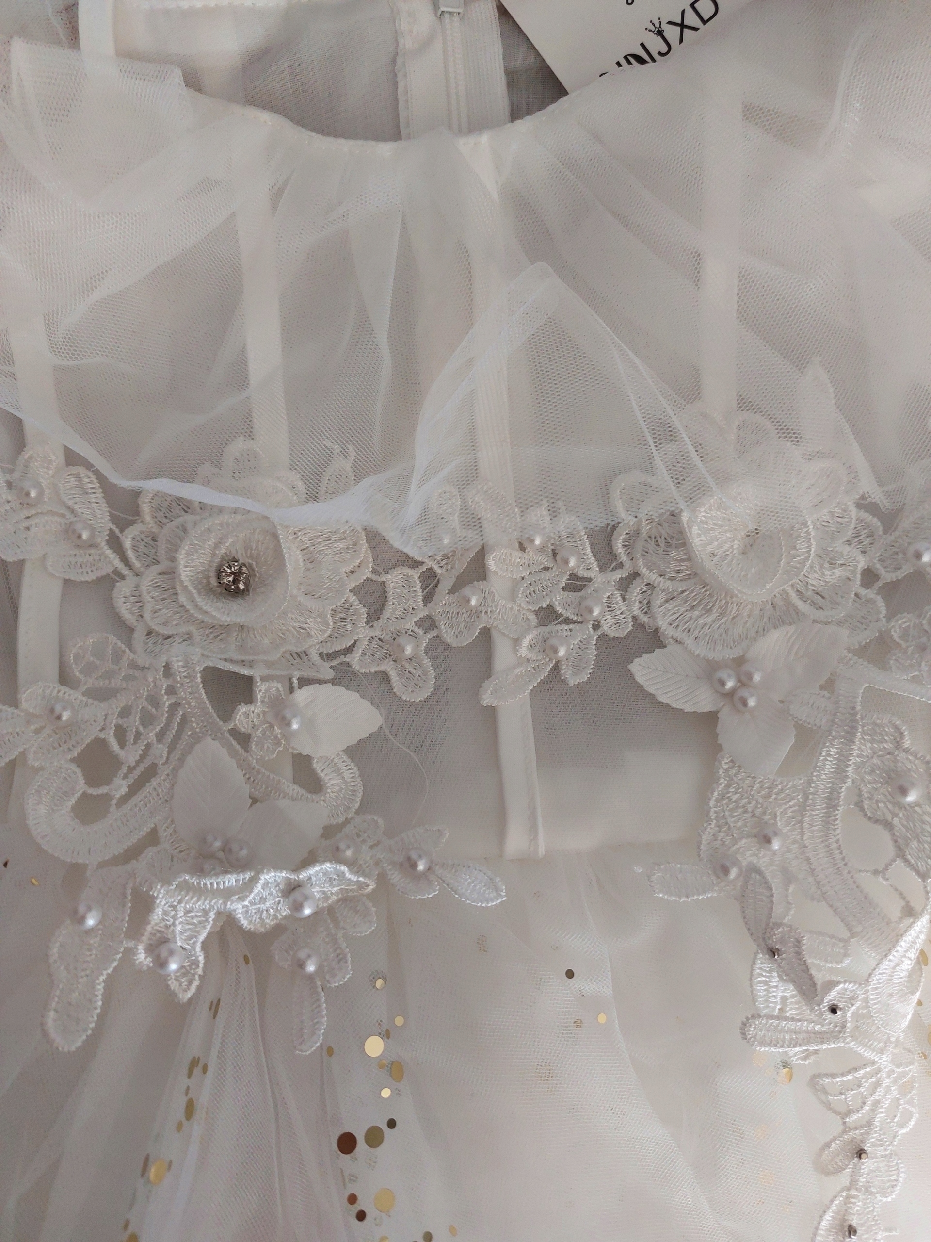 БІЛА ДОВГА КЛЮШЕНА СУКНЯ ДЛЯ ПРИЧАСТЯ, СІТЧАСТІ ШАРИ