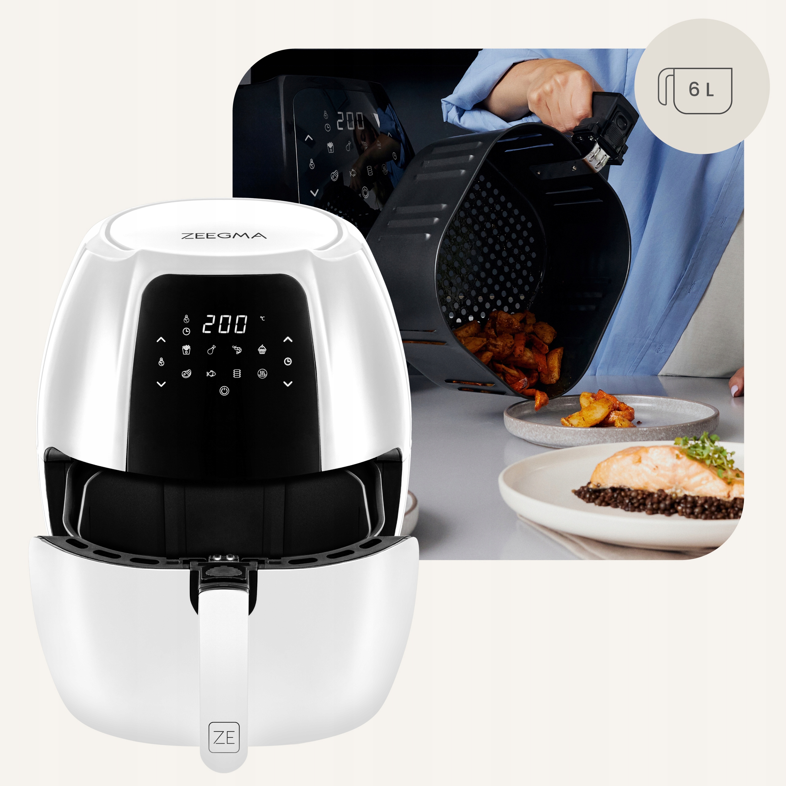 Фритюрниця Zeegma Knapper Grand обладнана функцією аерофритюрниці, що означає, що ви не будете використовувати олію для приготування страви!