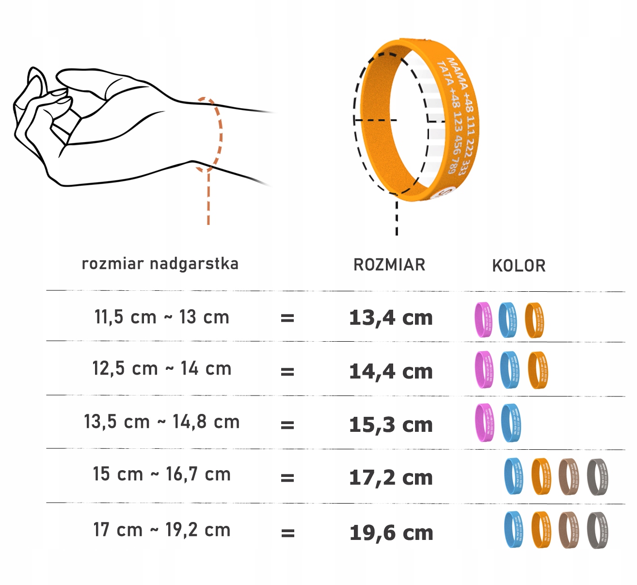 розроблено так, щоб дитина могла зручно та із задоволенням носити його на зап’ясті. Крім того, красиві кольори, спеціальний силікон, ретельно виготовлене БІЛЕ гравіювання та привабливий дизайн викликають бажання дітей носити його, що надзвичайно важливо для ефективності цього рішення.