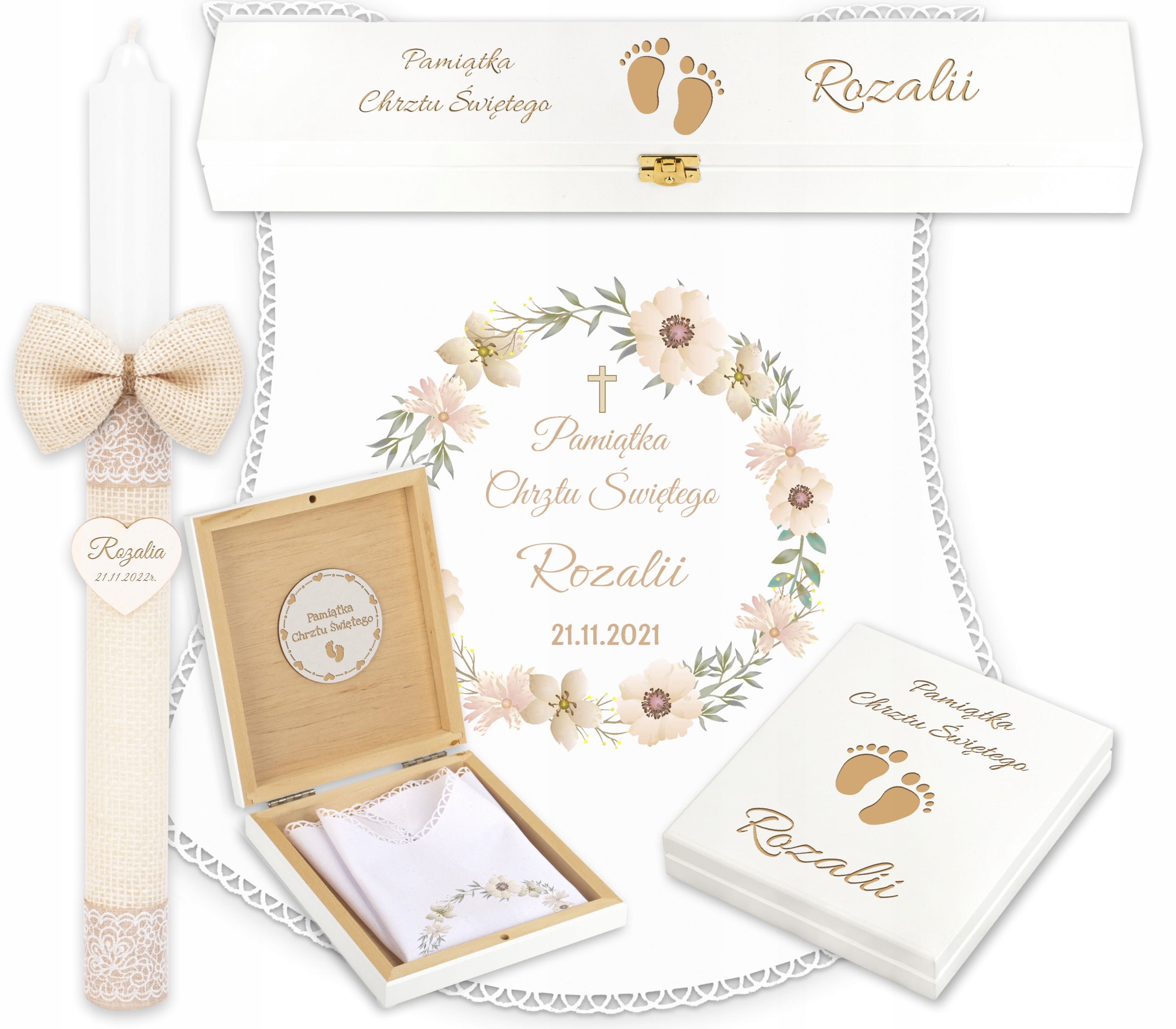 БІЛИЙ ОДЯГ І ХРЕСТИННА СВІЧКА 2 КОРОБКИ ХРЕСТИННЯ