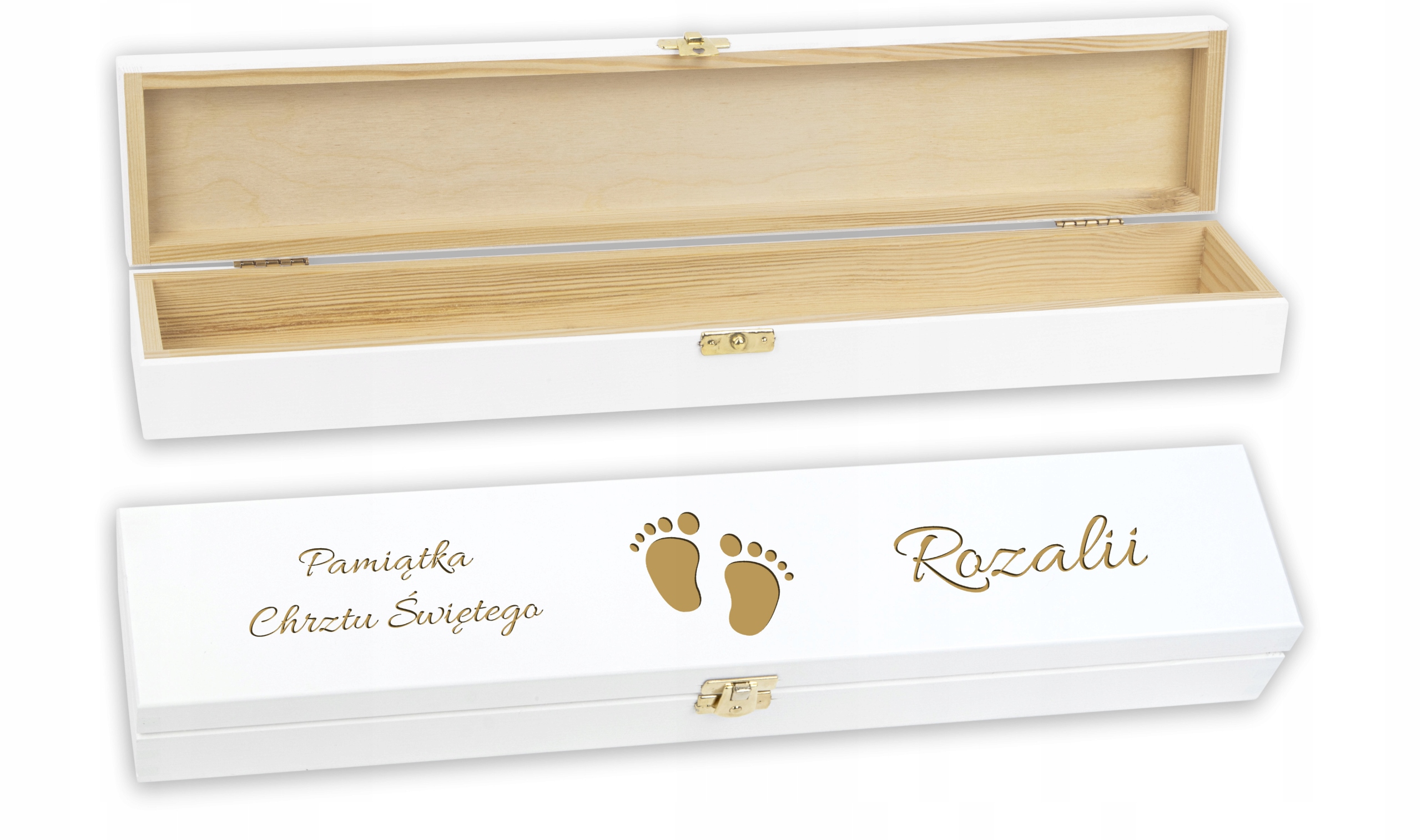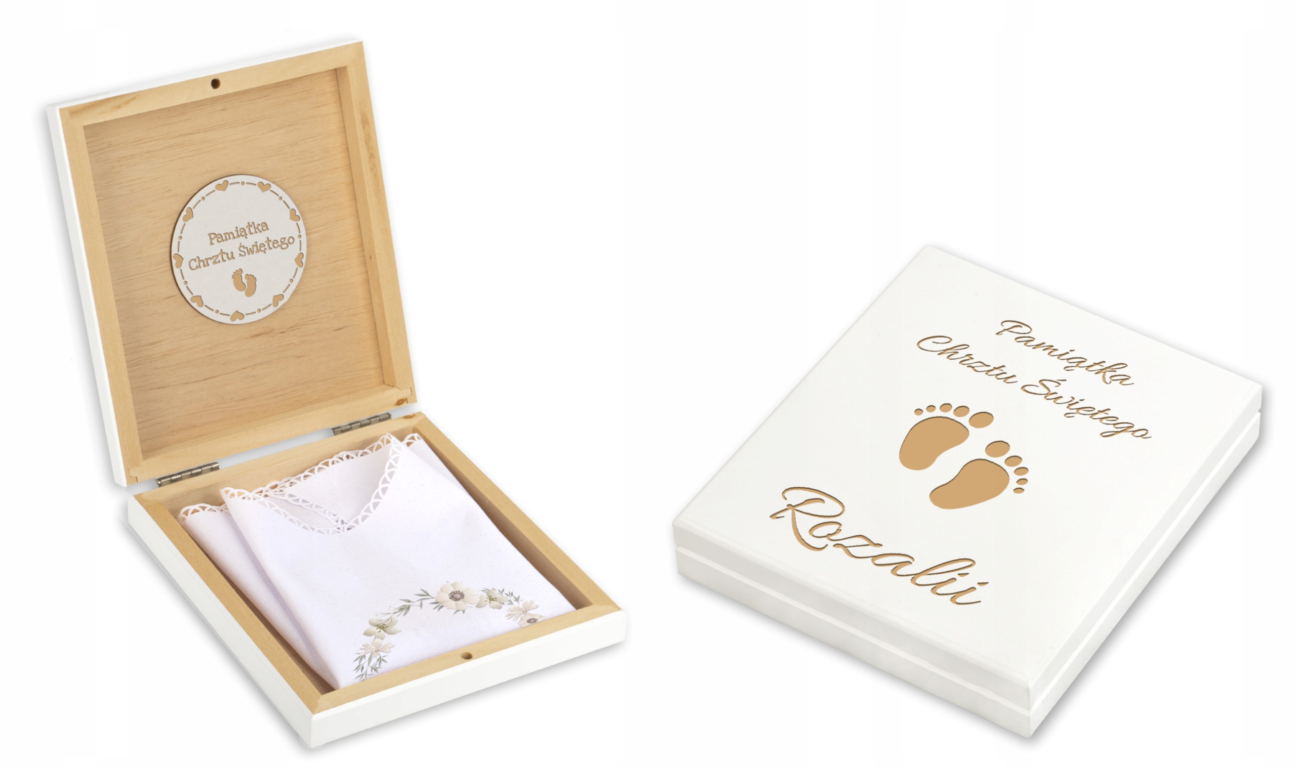 - лазерне гравіювання – до свічки кріпиться кулон, на якому ми гравіруємо ім'я дитини та дата святкування . Для гравірування ми використовуємо новітнє обладнання від світового лідера. На дерев'яну коробку для свічки та тканину також нанесено лазерне маркування.