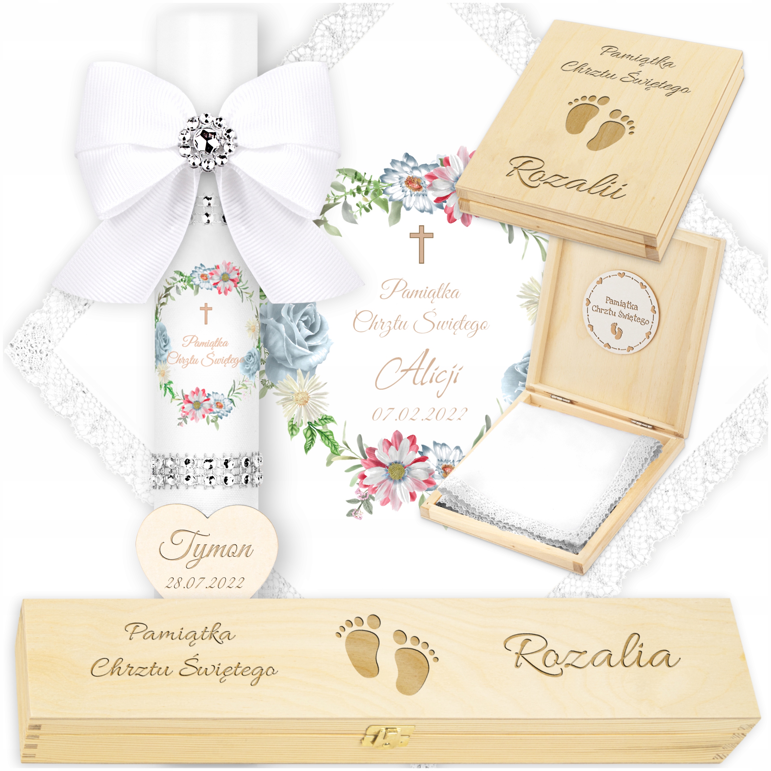 БІЛИЙ ОДЯГ ТА СВІЧКА ДЛЯ ХРЕЩЕННЯ 2 КОРОБКИ ДЛЯ ХРИЩЕННЯ
